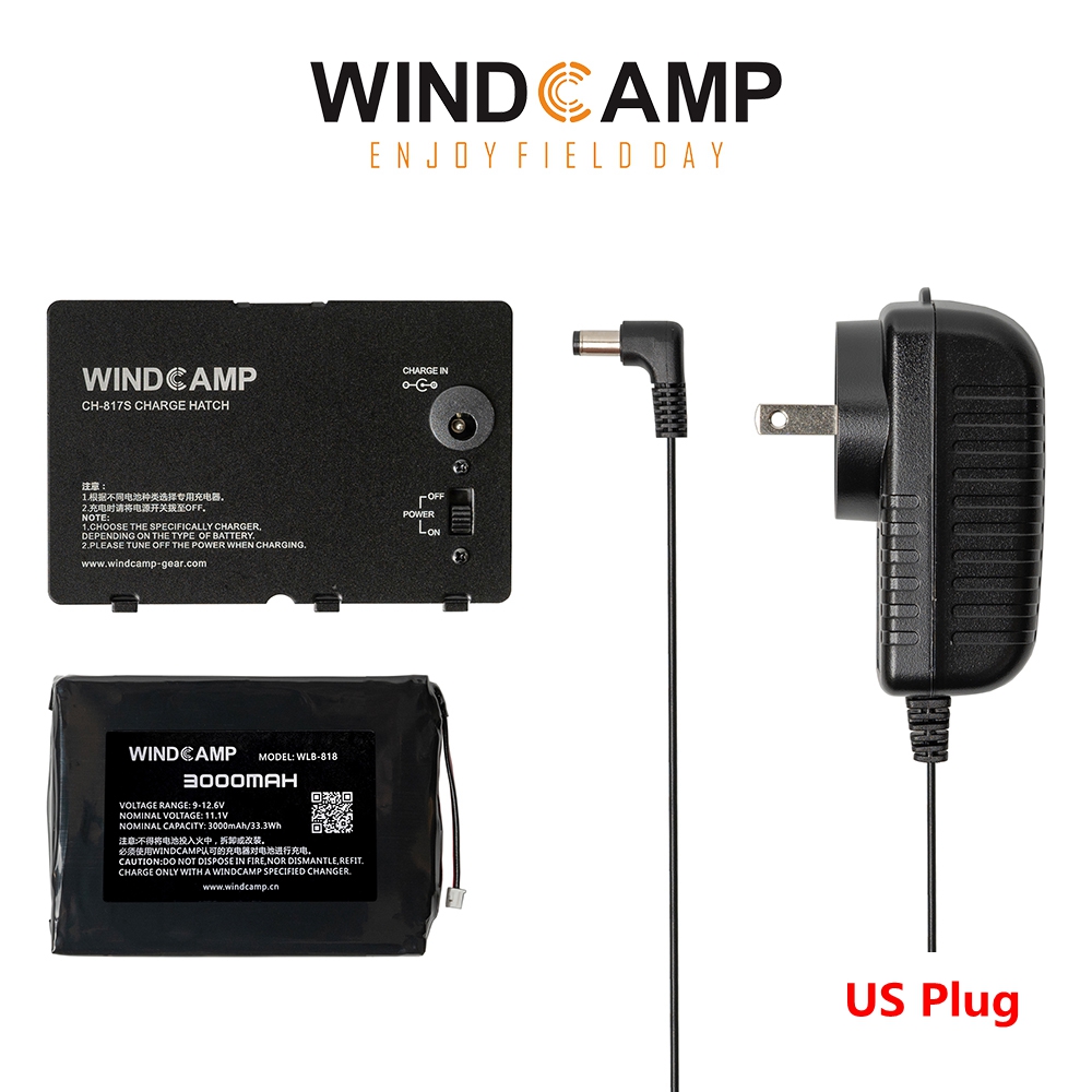 battery packs, only for our WLB-818 lithium battery packs. WINDCAMP 12.6V 2A Charger Input Voltage: AC 100-240V 50/60Hz Output Voltage: DC 12.6V Output Current: 2A Plug specifications:EU Plug、US Plug Length of the Output Cable: 0.8m Plug specification: DC 5.5*2.1mm Note: The