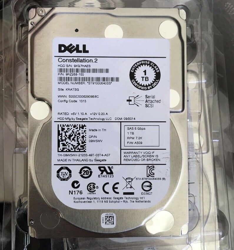 NEW Dell 1TB 6G 7.2K 2.5" SAS 9W5WV 09W5WV ST91000640SS Server HDD Hard Drive