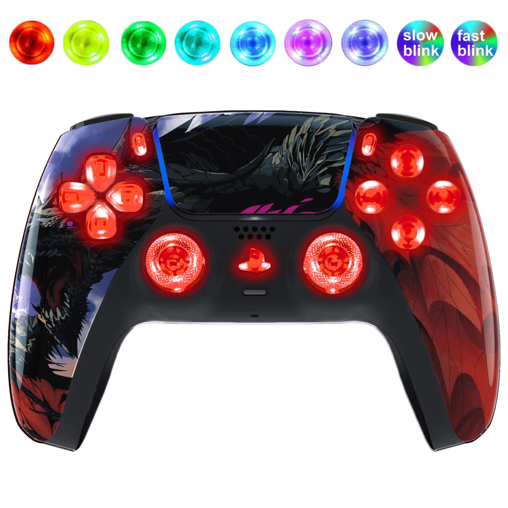 Dragon Roar Silent Modz LED Light-Up Buttons Wireless Custom Controller for PS5