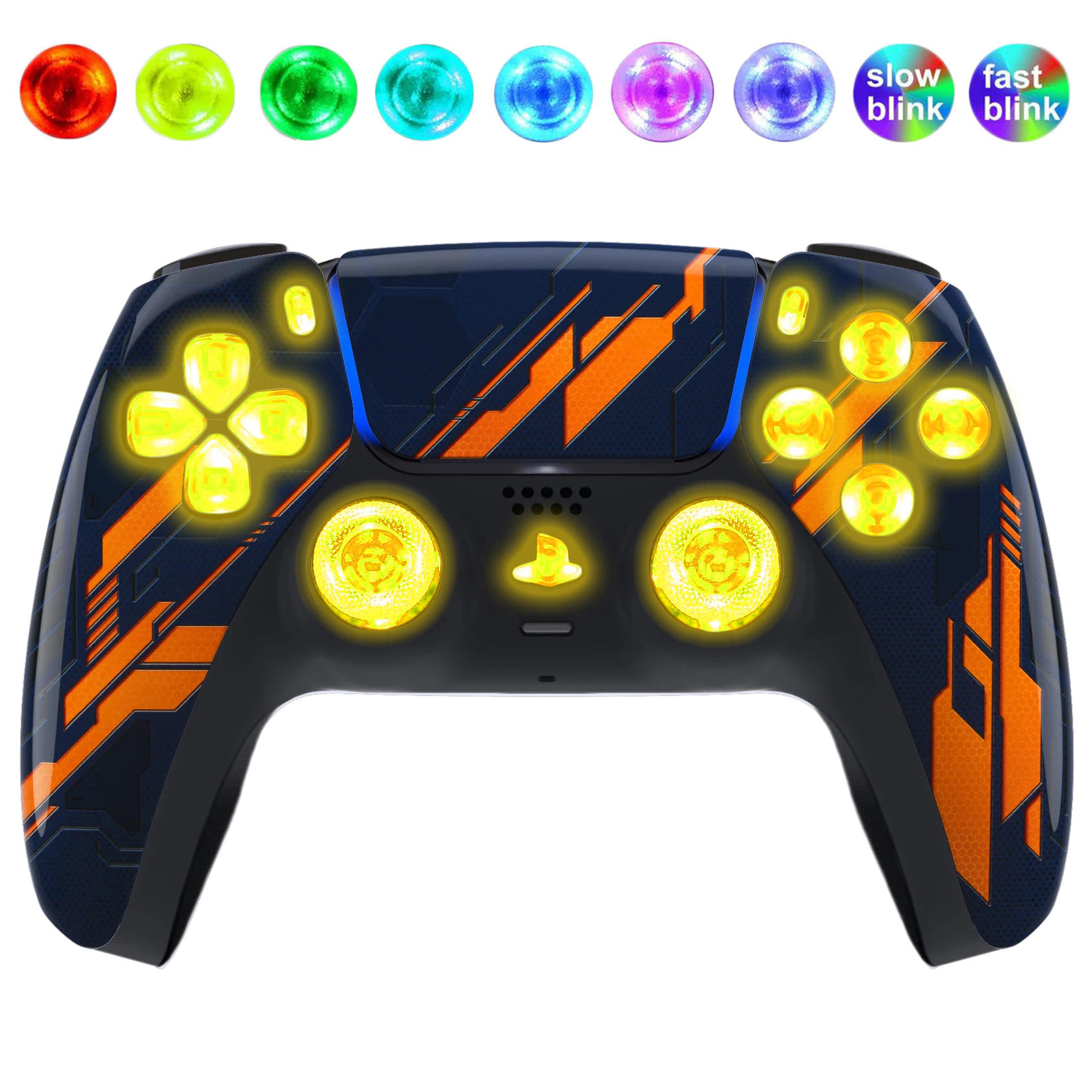 Orange Mecha Silent Modz LED Light Up Buttons Wireless Custom Controller for PS5