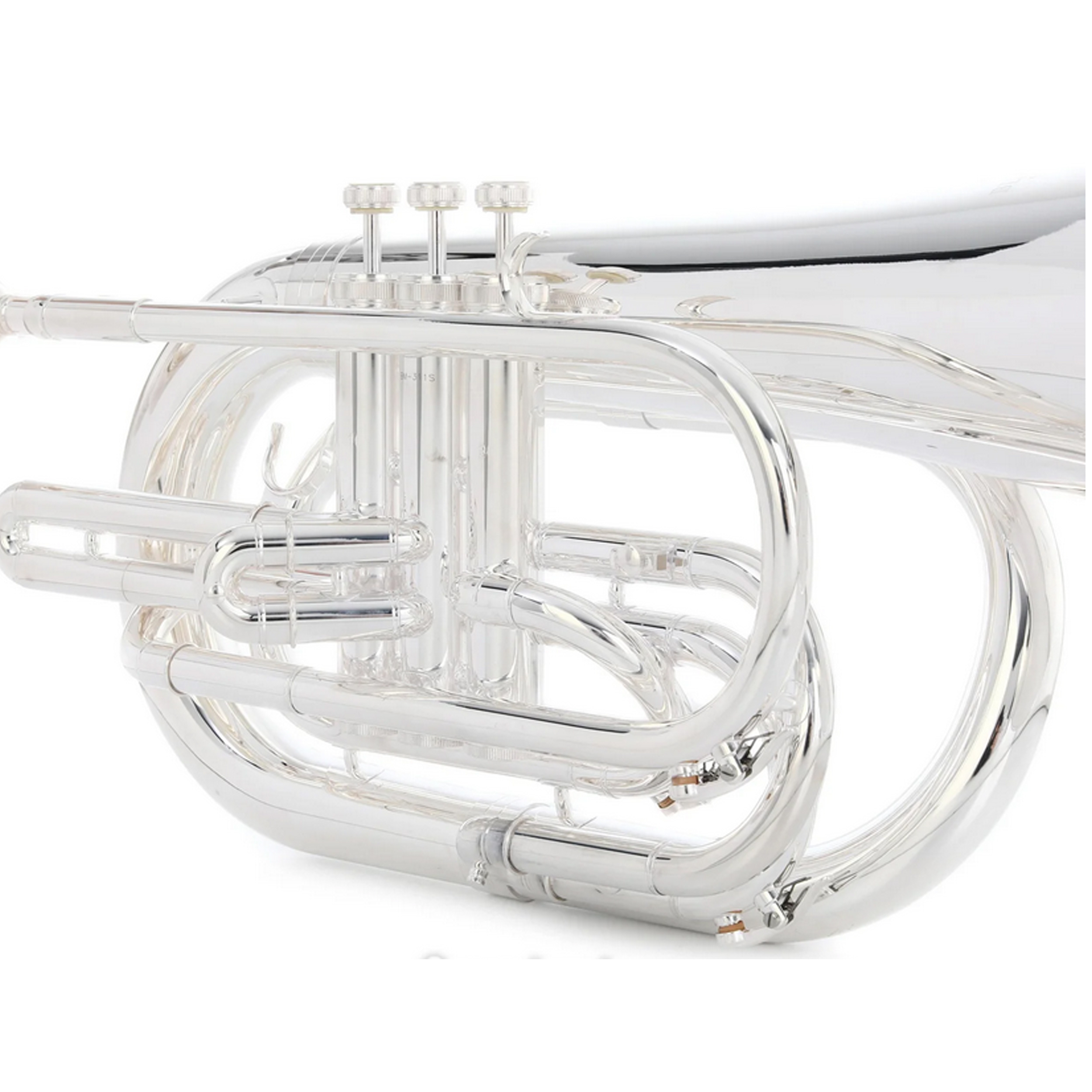 The BM311 is a forward bell baritone with a huge, resonant sound. It is designed with a large shank mouthpiece and large bore allowing for greater blowing freedom to facilitate the volume demands of outdoor playing. The compact wrap design affords a balanced, focused sound making the BM311 an excellent choice for any marching band in a parade or on the field.