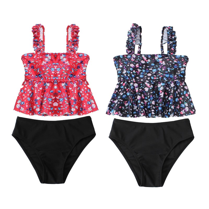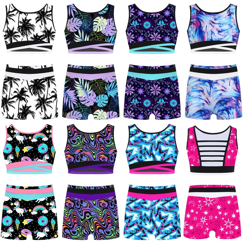 2Pcs Kids Girls One-piece Round Neck Sleeveless Racer Back Jumpsuit and Elastic Waist Boyshorts Set.