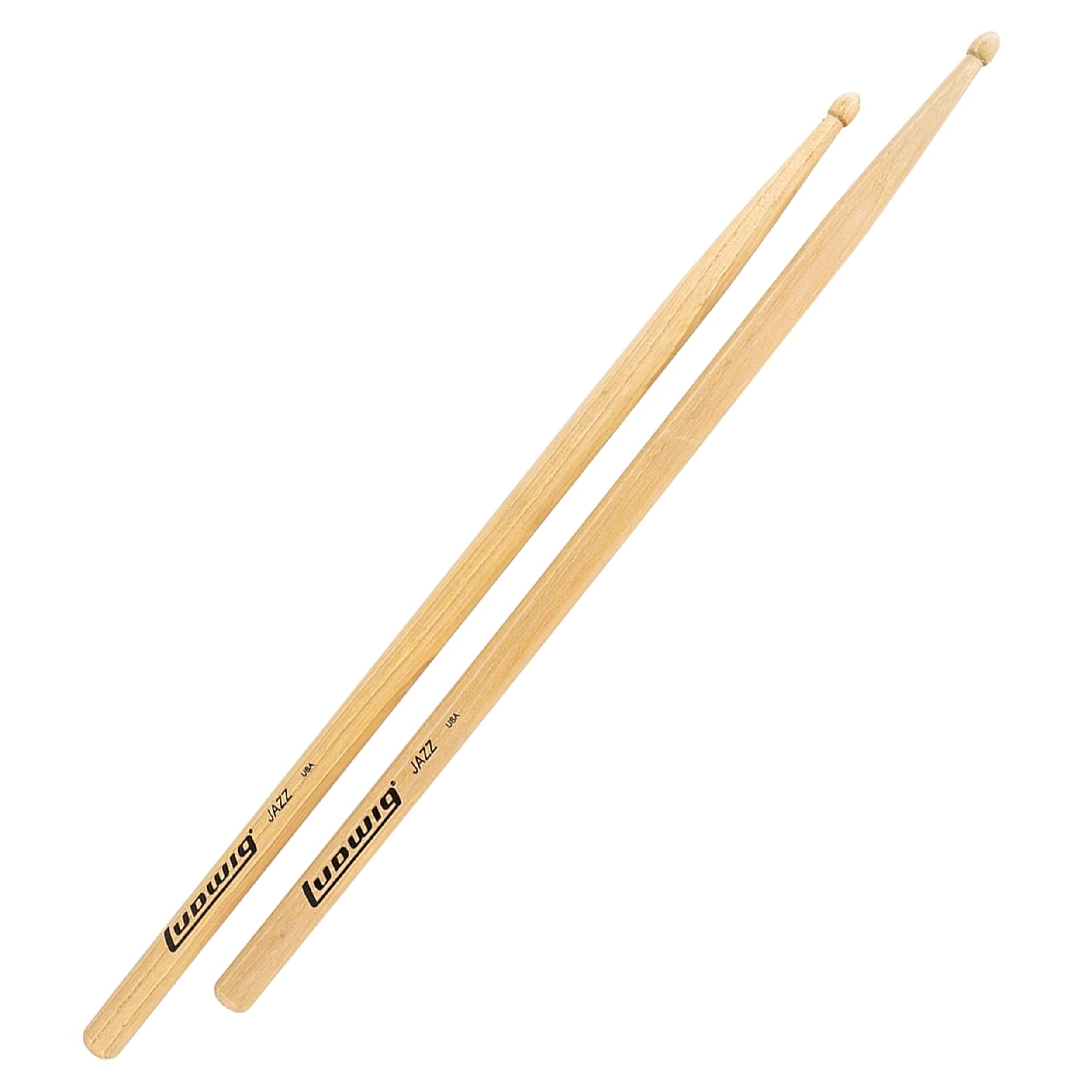 Pair of Jazz Hickory Ludwig LVJAZZ Wood Tip Drum Sticks made from quality hickory at their USA factory. From jazz to metal, Ludwig has the sticks to make the music.