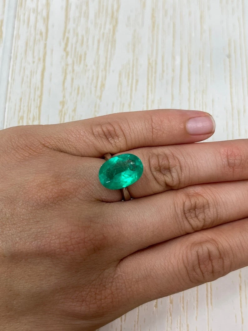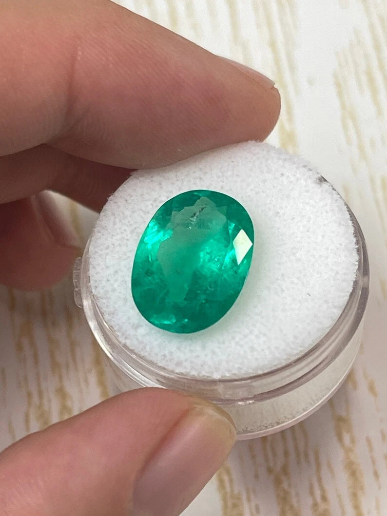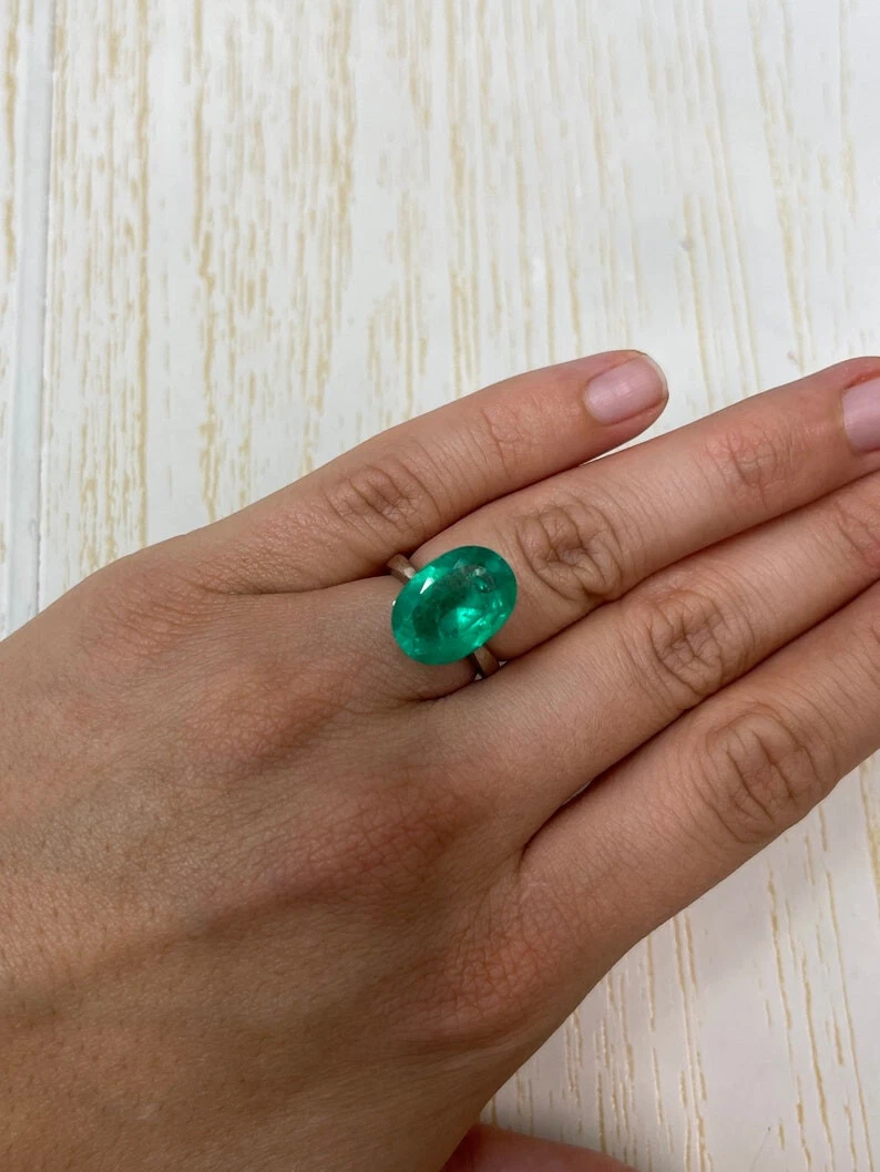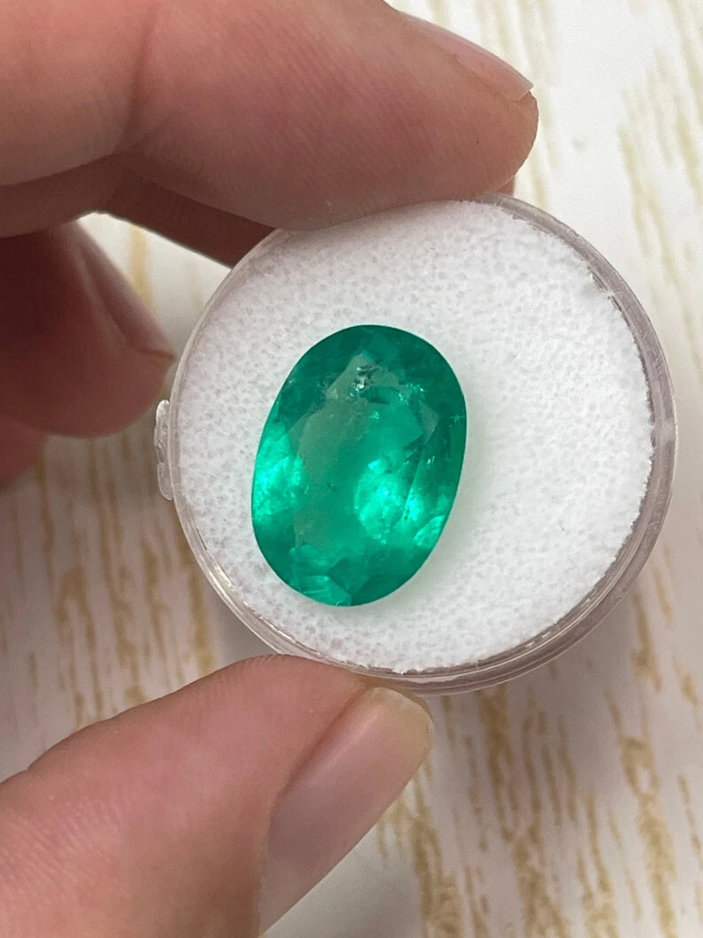 7.00 Carat 16x12 Yellowish Green Natural Loose Colombian Emerald-Oval Cut