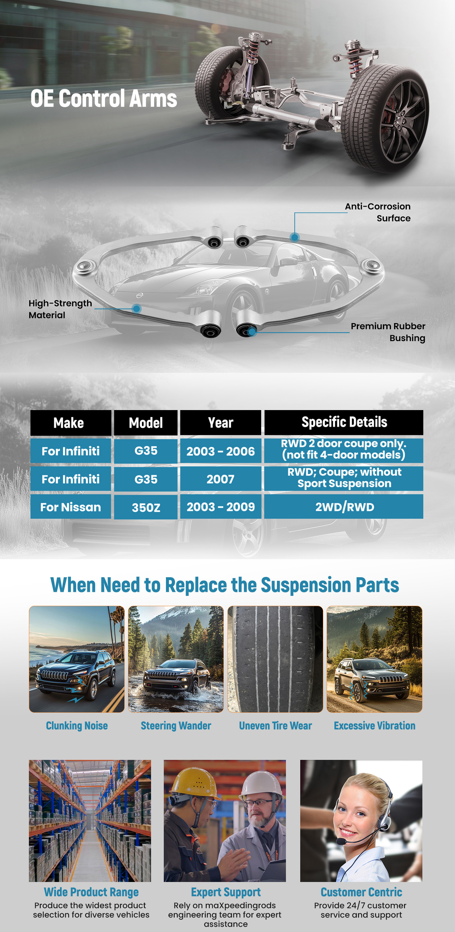 - The control arms are manufactured using advanced processes and premium coatings to maximize their durability and corrosion resistance