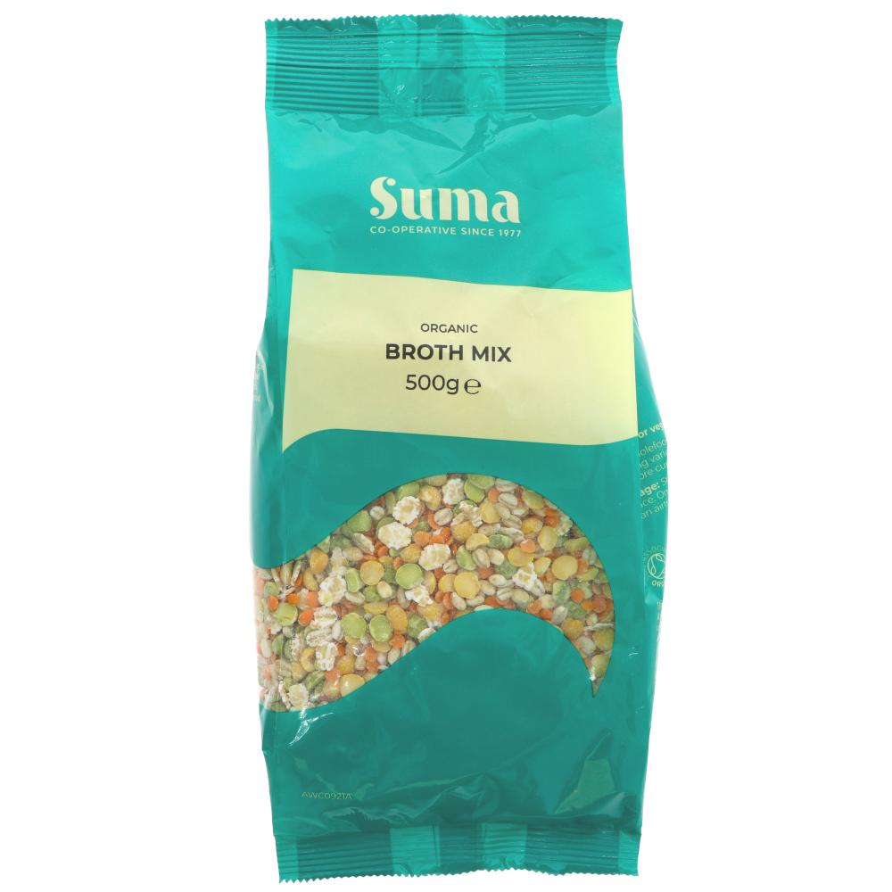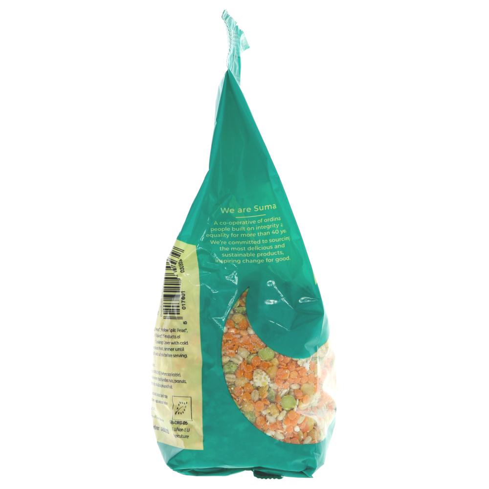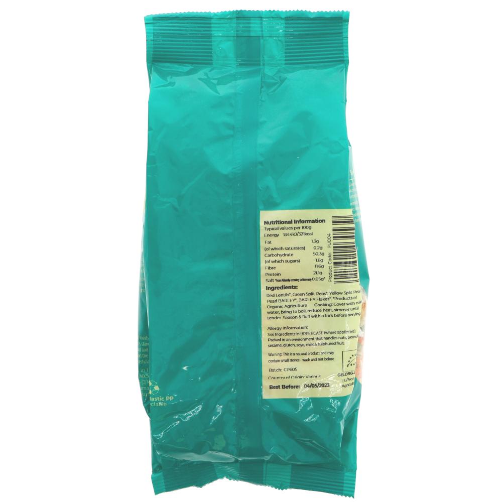 Red Lentils* 29%, Green Split Peas* 21%, Yellow Split Peas* 21%, Pearl Barley* 21%, Barley Flakes* 8%
