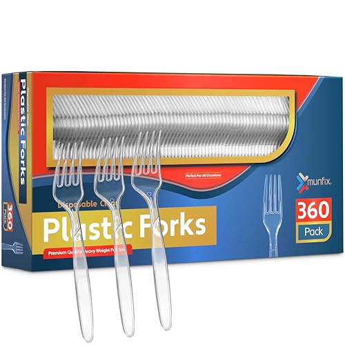 360 Count Clear Plastic Forks Heavy Duty, Premium Disposable Forks,