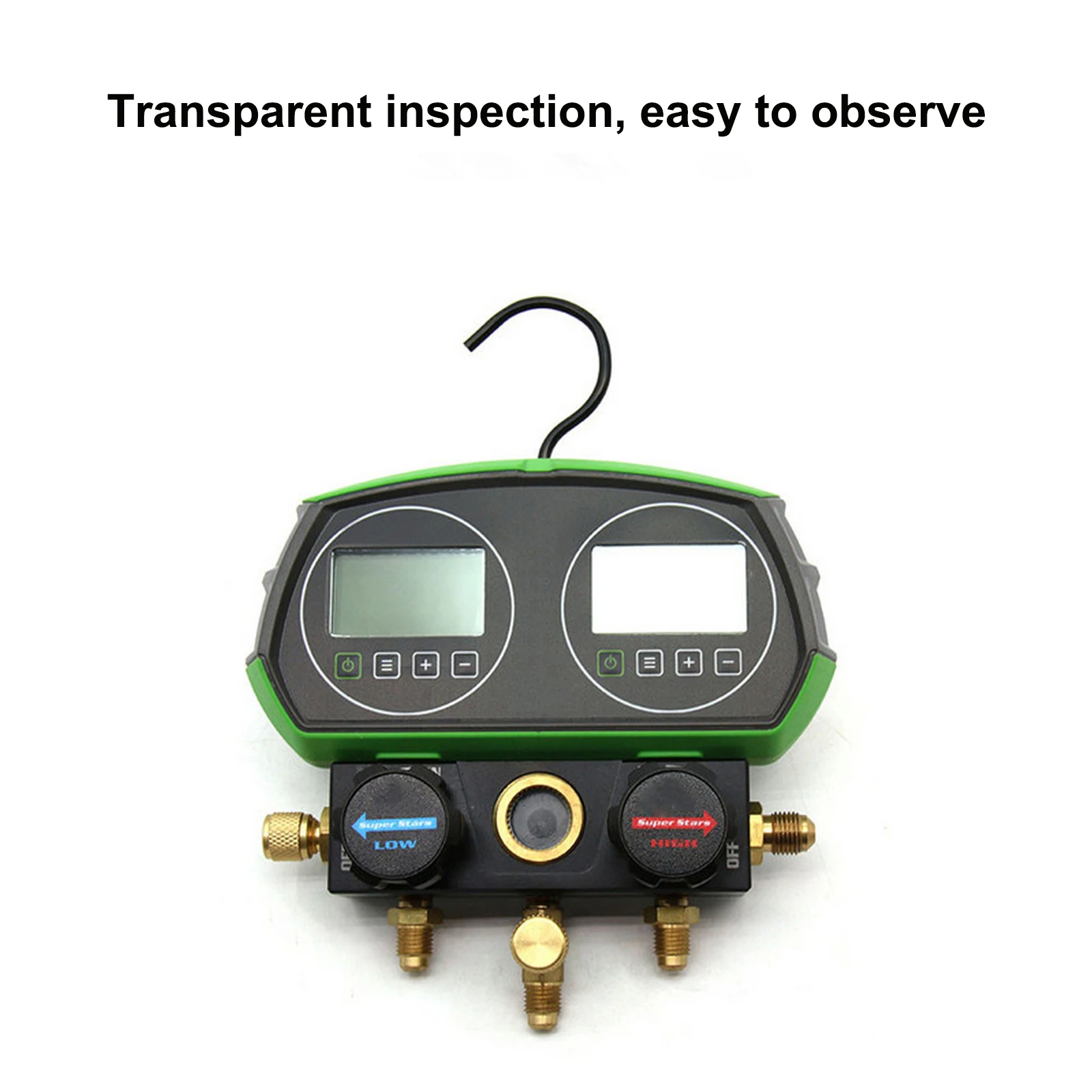 1.Refrigeration digital manifold has three common working modes:refrigerant measurement, vacuum measurement, and leak detection. The HVAC gauge built-in 90 kinds of refrigerant date. Calculate the subcooling superheat to facilitate direct reading of operating process data.