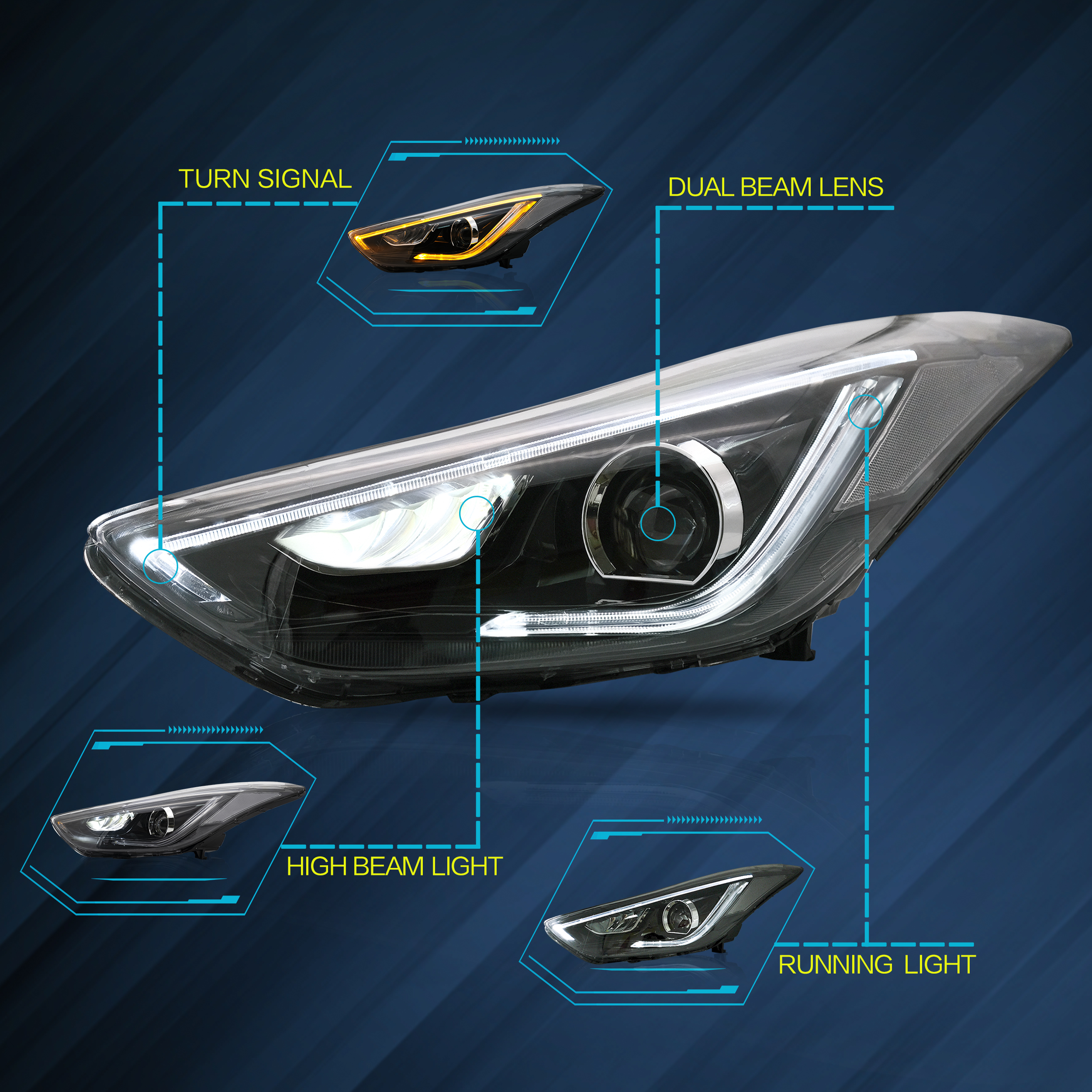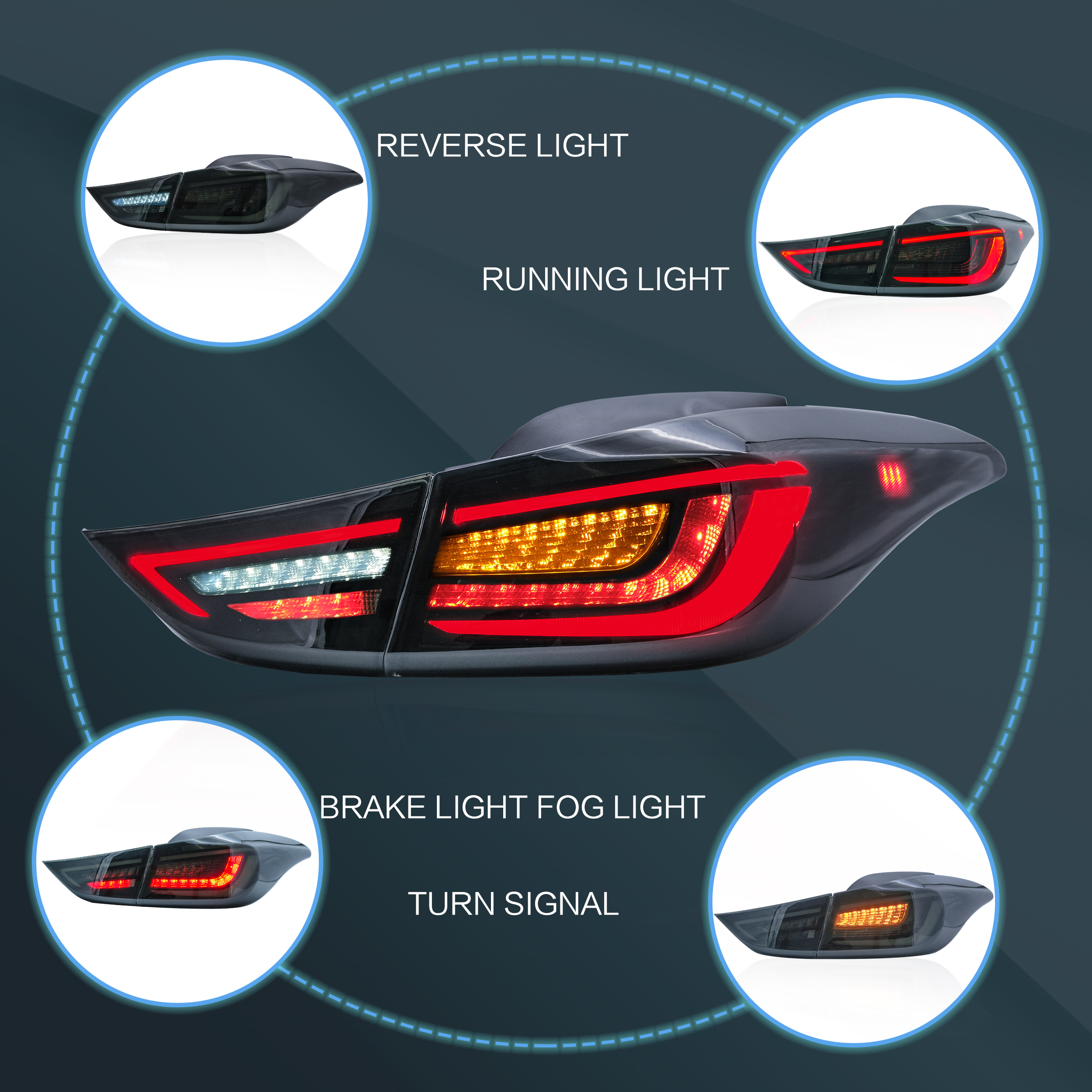 Fit For Hyundai Elantra Sedan & Coupe [Fifth Gen] [GL, L, Limited, SE, Sport] 2011 2012 2013 2014 2015 & Avante MD Coupe Aftermarket Front Lights and Tail lights. (Note: Not compatible with Elantra GT hatchback models).