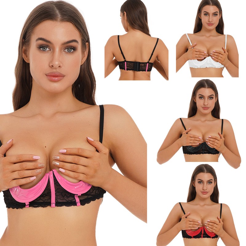 Sheer lace bra with floral pattern, 1/3 cup and underwire design highlights the shape of your bust.