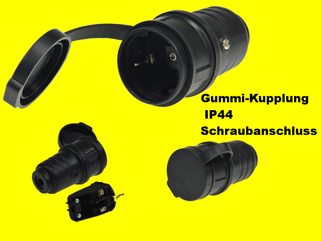 reguläre Schutzkontakt-Stecker und -Kupplungen. Dank des mitgelieferten Vorhängeschloßes (im Lieferumfang) besteht die Möglichkeit,