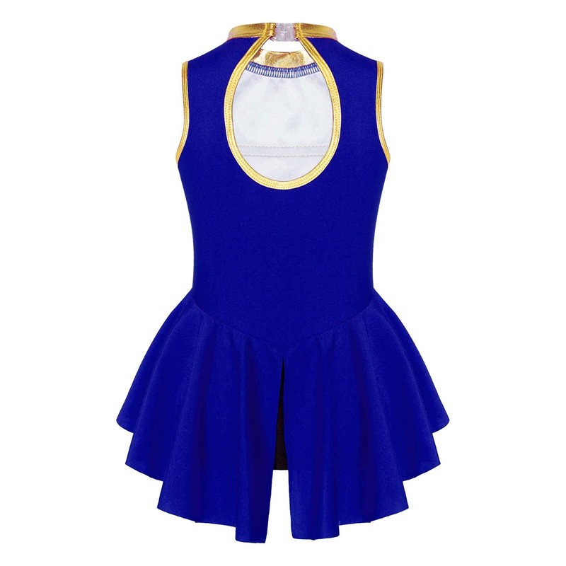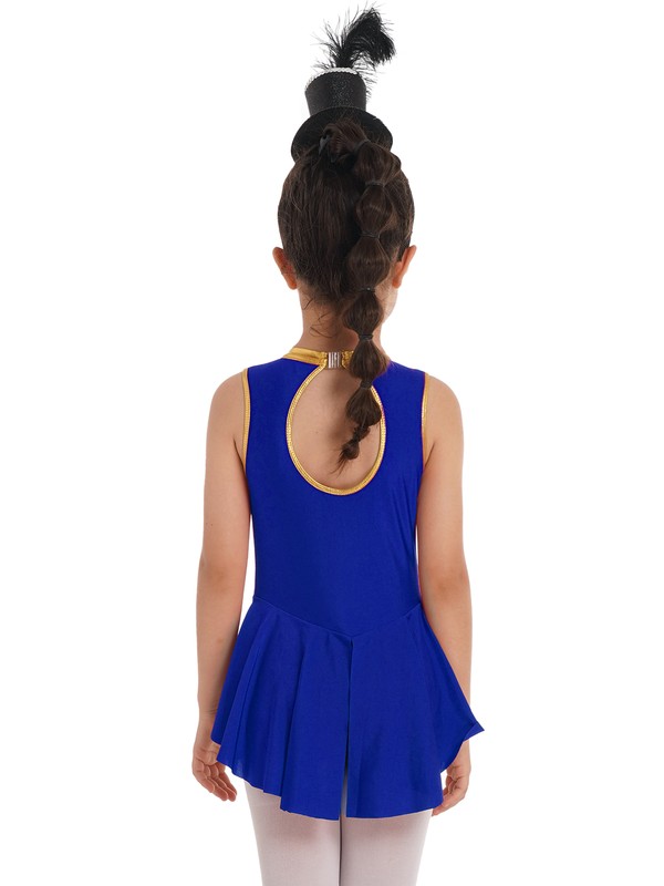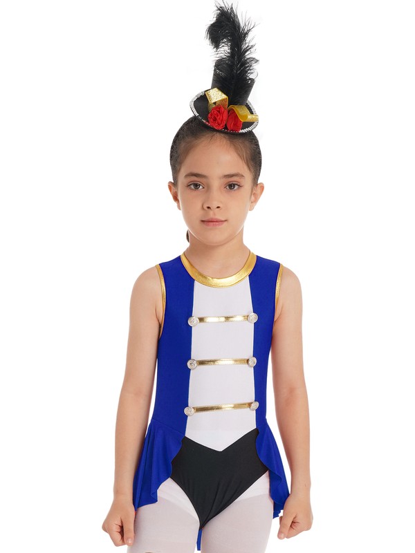 Kids girls circus dress up costume sleeveless back hollow out vintage button adorned color contrast cosplay jumpsuit.