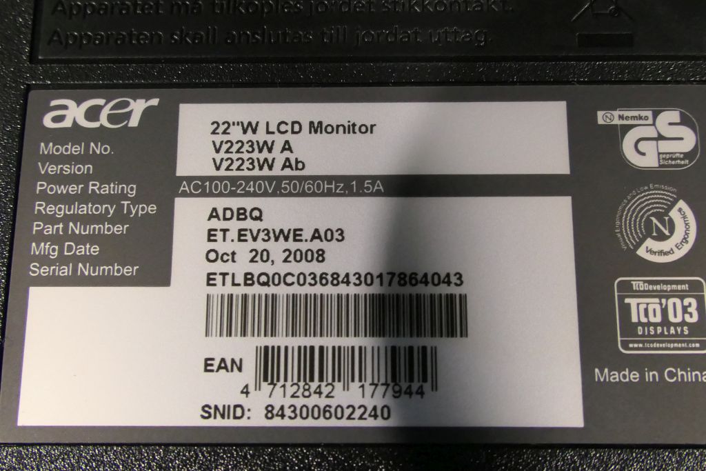 Acer V223W 22" TFT LCD LED Monitor