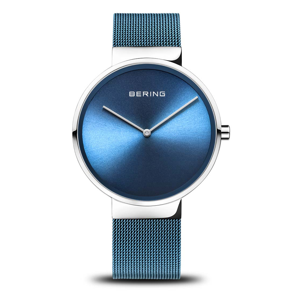 Classic, puristic, and yet exciting. Perfect style combined with contemporary minimalism. Inspired by Danish design, the CLASSIC COLLECTION represents a unique timepiece, perfectly highlighting your daily style. The polished silver coloured stainless steel case, made of pure, high quality, medical-grade stainless steel (316L). In combination with the modern blue coloured milanese strap, provides the classic BERING look. The fine workmanship of the milanese strap gives the watch a refined, almost noble touch. A minimalist Sunray dial which matches the band, protected by crystal clear, scratch-resistant sapphire crystal, perfectly completes the modern look.