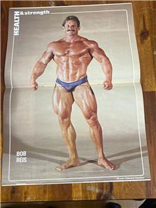 Bodybuilding muscle physique strength fitness weightlifting powerlifting bodybuilder magazine in good/very good condition. General cover, corner and edge wear...see pics. United Kingdom England magazine. Bob Reis Pullout poster still attached.
