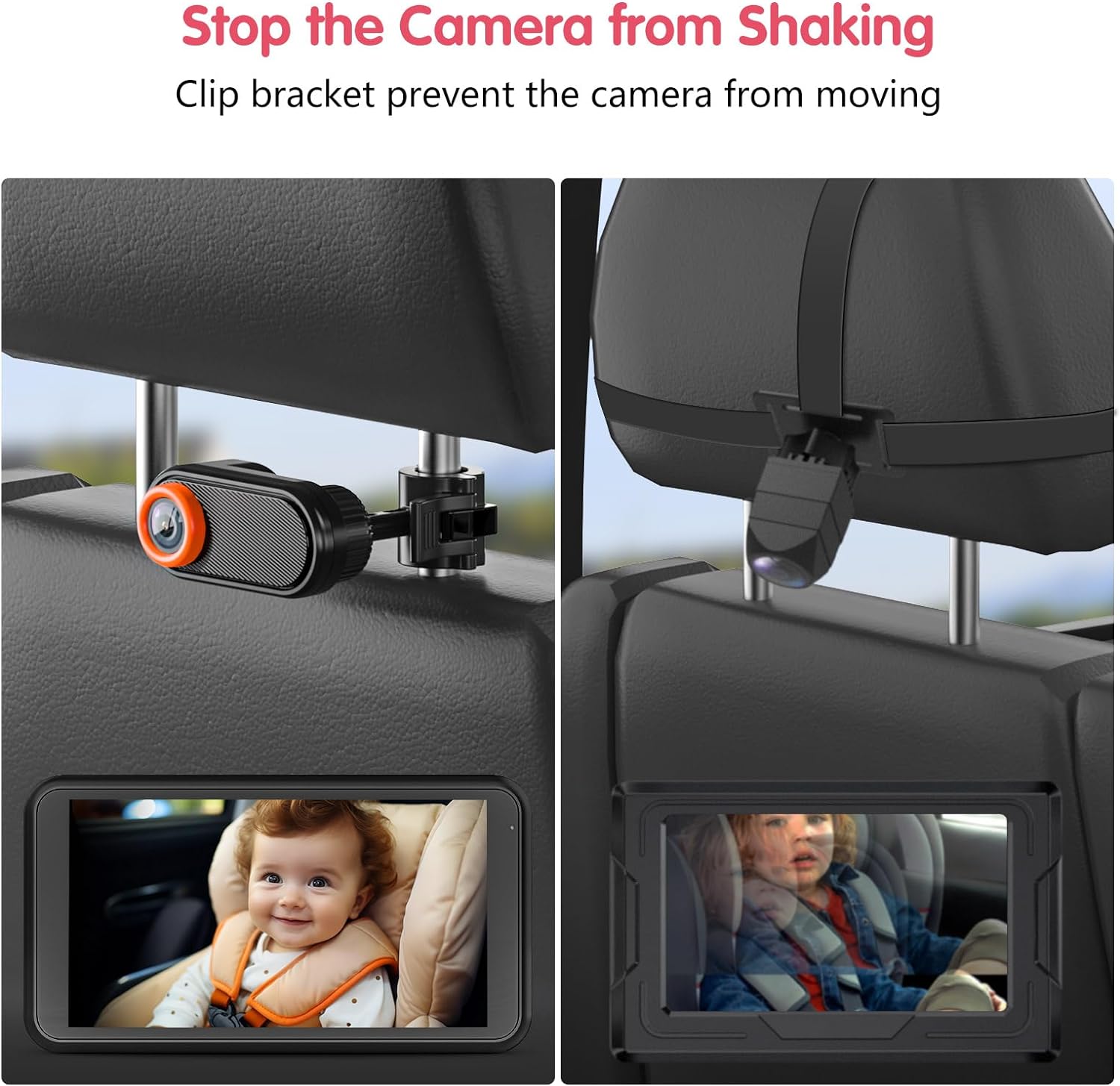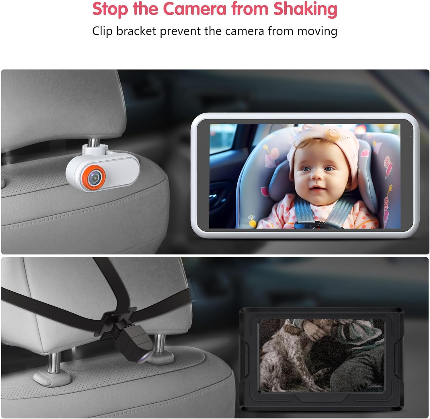 Secure and Stable: Luckview baby car camera's secure buckle design sets it apart from other products, our car baby monitor is equipped with advanced buckle design, ensuring that your footage is always clear and steady. Say goodbye to shaky camera images and the hassle of frequently readjusting the camera angle and straps.