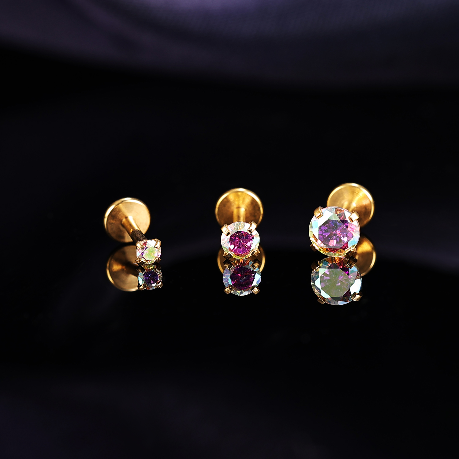 1 Pc Stainless Steel Lip Labret Piercing Round Zircon Ear Helix Tragus Piercings