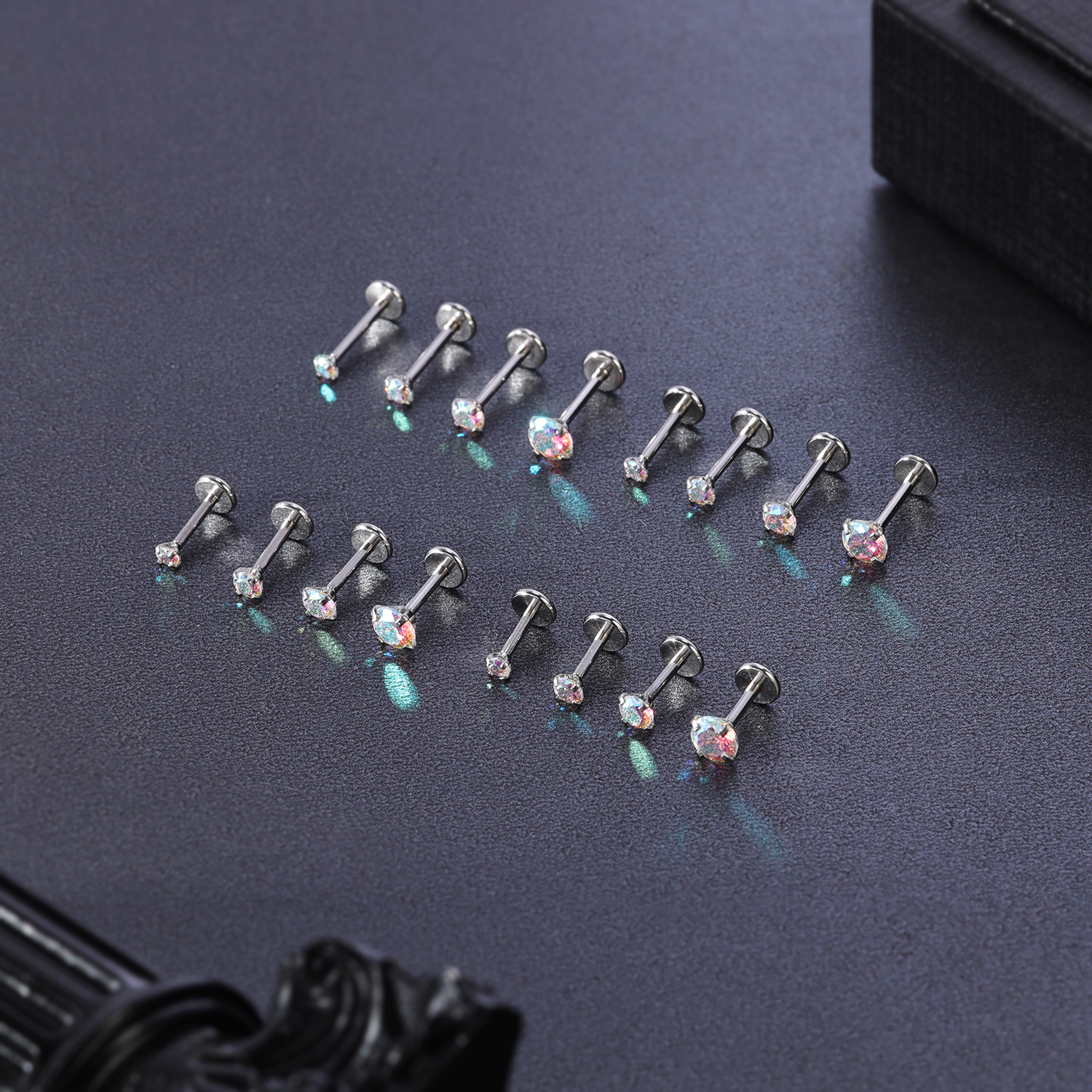 12-16 Pcs/Lot Stainless Steel Lip Labret Piercings CZ Ear Tragus Conch Piercing
