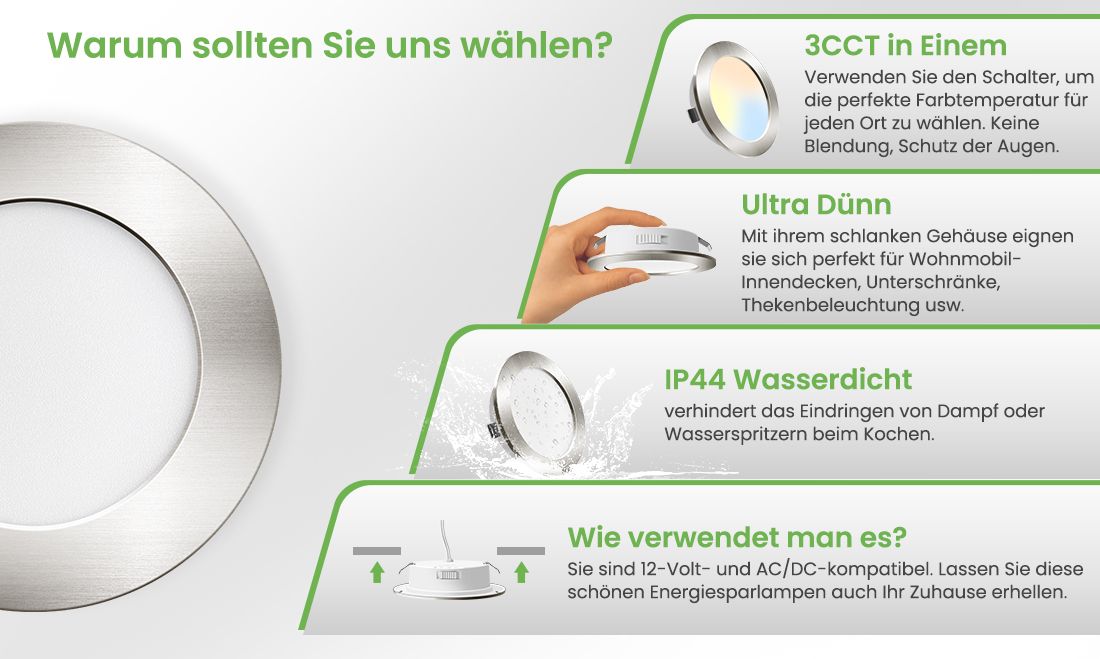 【3CCT in Einem】Verwenden Sie den Schalter, um die perfekte Farbtemperatur für jeden Ort zu wählen. Keine UV-Strahlen, keine Blendung, Augenschutz.