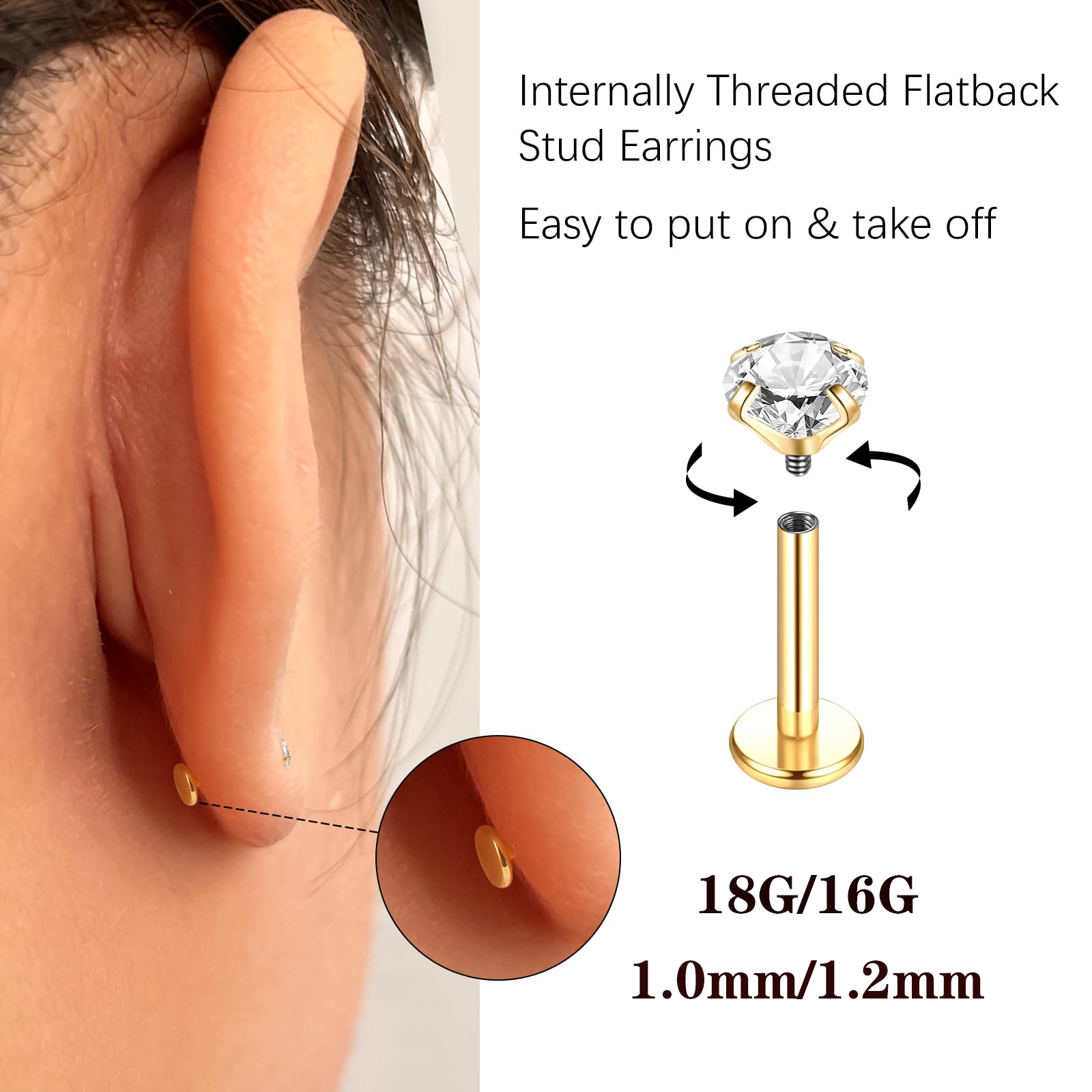 10/20 Pairs CZ Zirconia Stud Earrings 3-6mm Plastic Resin Helix Conch Piercing