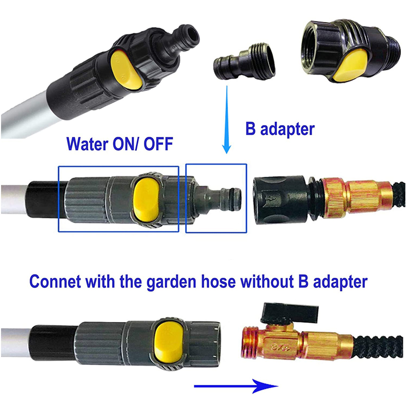 Multi-function connector: This switch which can be attached to a garden hose in 2 methods,When your hose is with female thread. please click on the with our male adaptor. When your hose is with male thread. please remove the adaptor and screw the male tread to our female thread connector, adaptor can be unsrewed to fit female standard hose.maybe this task needs a wrench,and requires strong action, Please make sure the connection part has a gasket to avoid leaking.