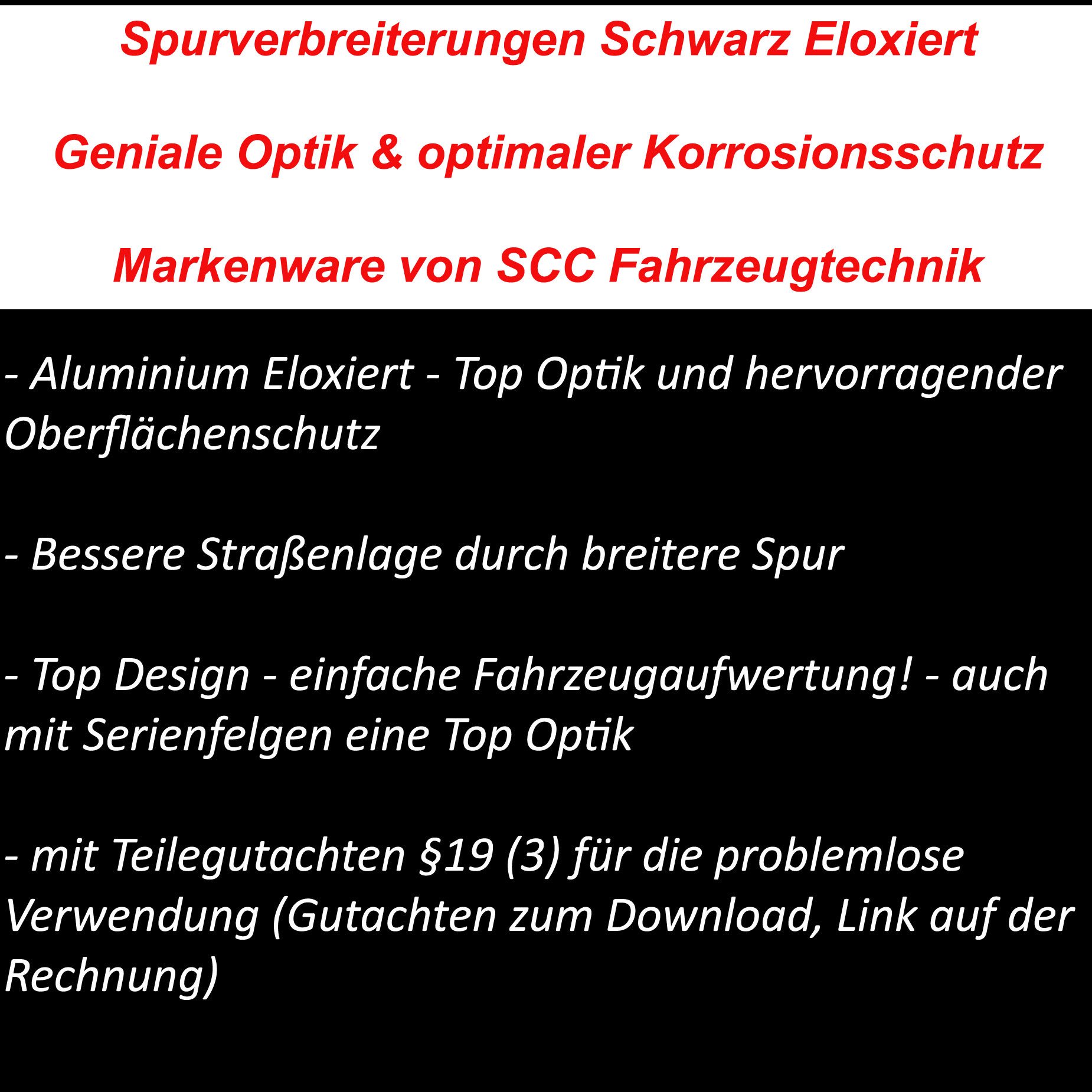 SCC BlackLine Spurverbreiterungen sorgen mit minimalem Aufwand für einen sportlichen Look deines Fahrzeugs. Satte Optik selbst mit Serienbereifung, sowie eine durch die erhöhte Spurweite verbesserte Straßenlage. Spurscheiben des System 4B werden fest an der Fahrzeugachse montiert. Radschrauben zur Befestigung an der Fahrzeugachse sind bei diesem System bereits im Lieferumfang enthalten. SCC BlackLine Spurverbreiterungen Made in Germany sind aus Aluminium gefertigt, die Oberfläche ist um einen bestmöglichen Korrosionsschutz zu gewährleisten schwarz eloxiert. Verwendbar für alle Aluminium Serien- oder Sonderräder. Spurverbreiterungen von SCC BlackLine sind selbstverständlich mit §19 Teilegutachten (zum Download).