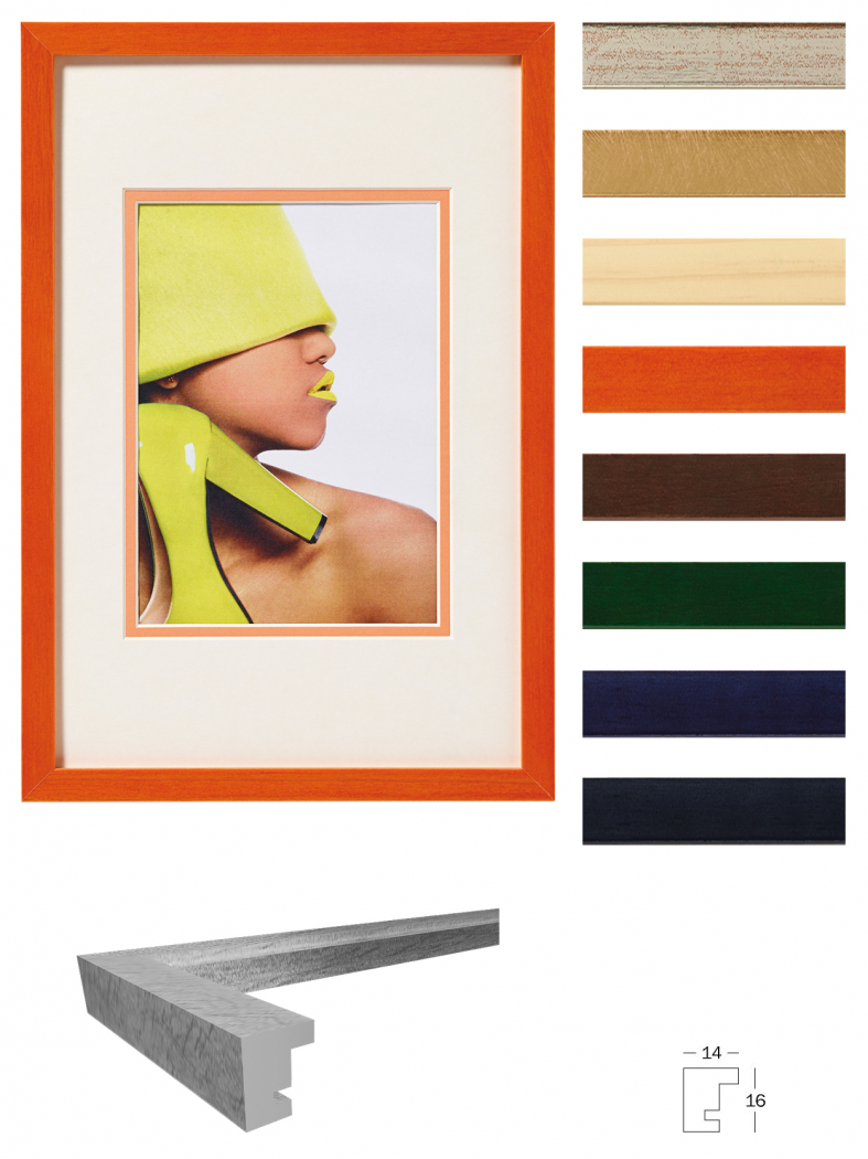 Holzrahmen Peppers, rechtechteckiges Holzprofil mit matter Oberfläche (Ausnahme Farbe gold und silber) in diversen Formaten und Farben.