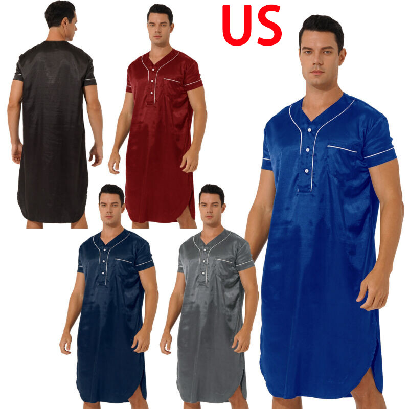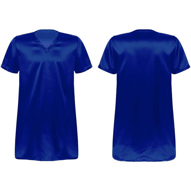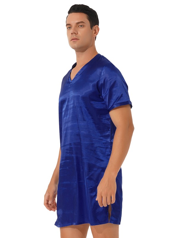 Unisex V Neck Short Sleeve Sides Split Nightwear.