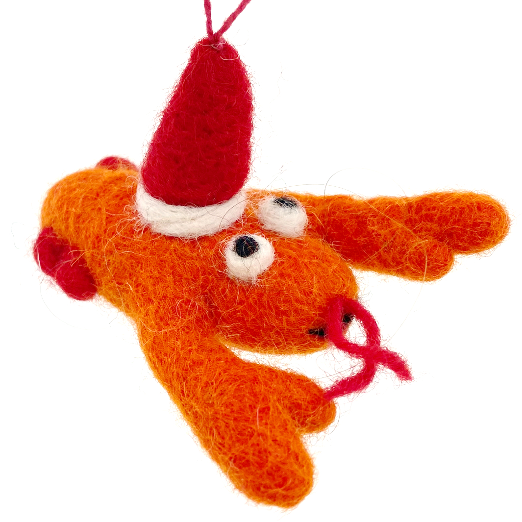 Charming Design: Adorable Wool lobster with Santa hat Christmas ornament. adding a whimsical touch to your holiday decorations.