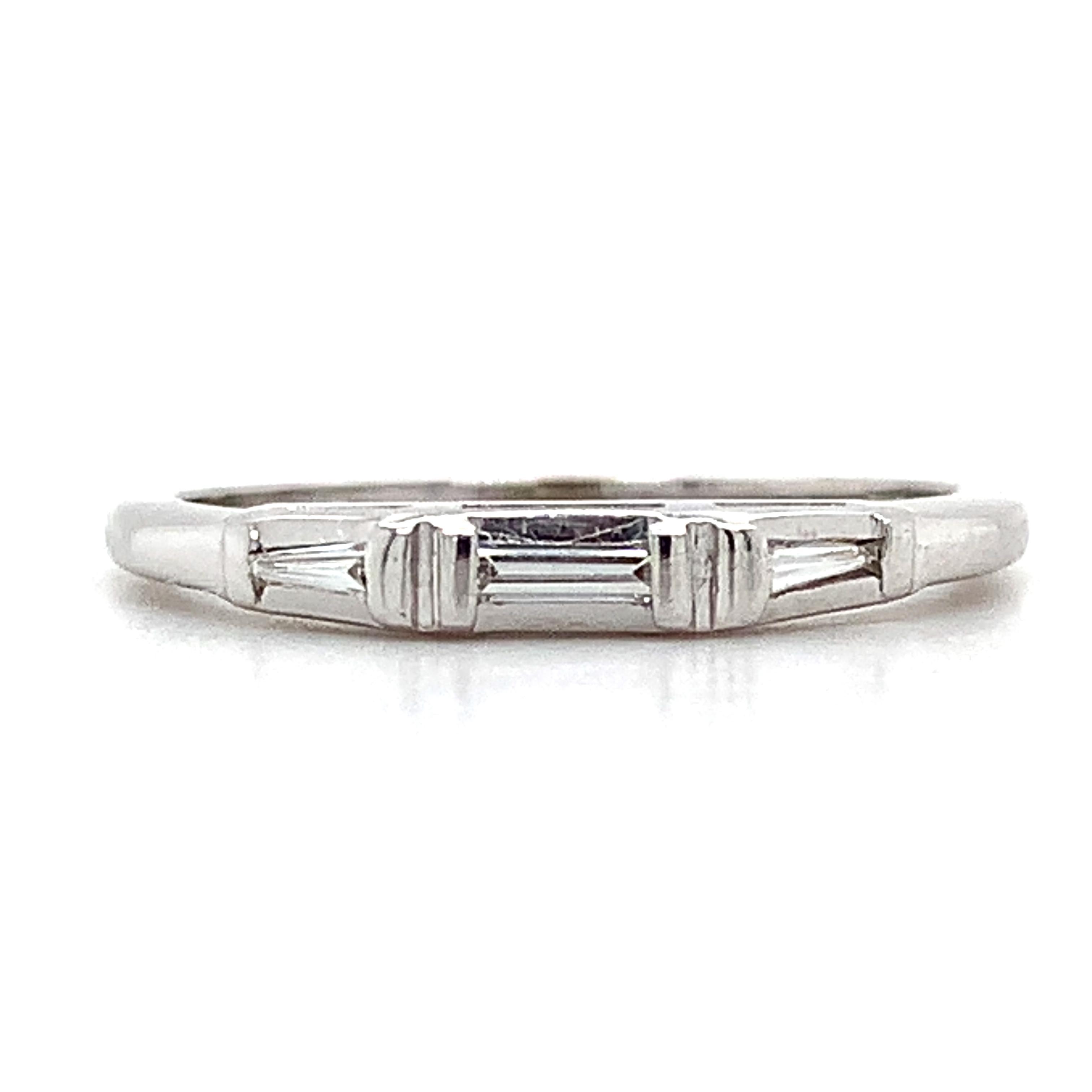 Vintage 14K White Gold Three-Stone Diamond Baguette Channel Band Stackable Ring