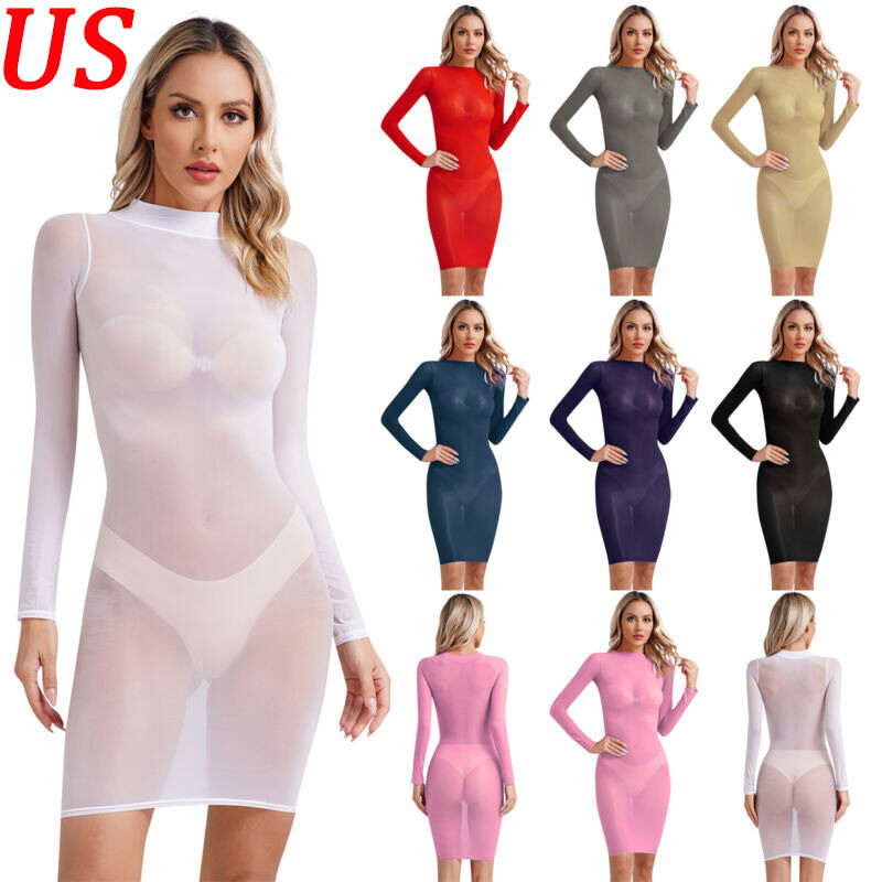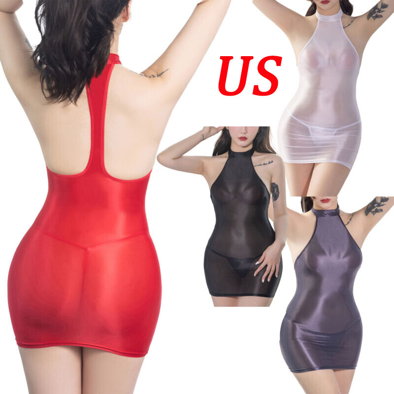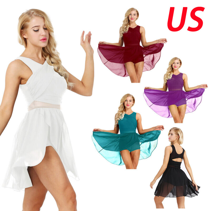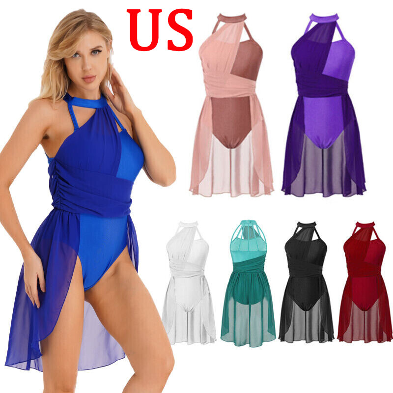 Sleeveless dance dress for women, see-through design, draped neck and asymmetrical hem adds fashion element.