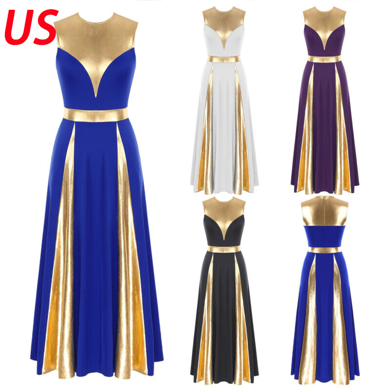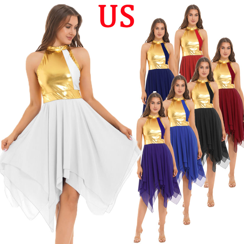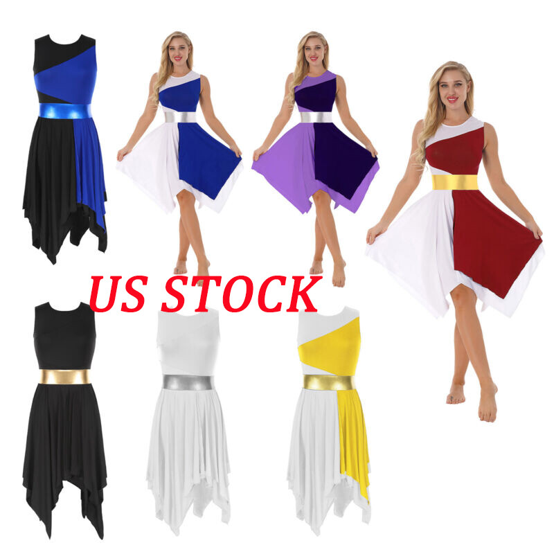 Praise dance dress for women, metallic shiny color block design brightens up any performance.