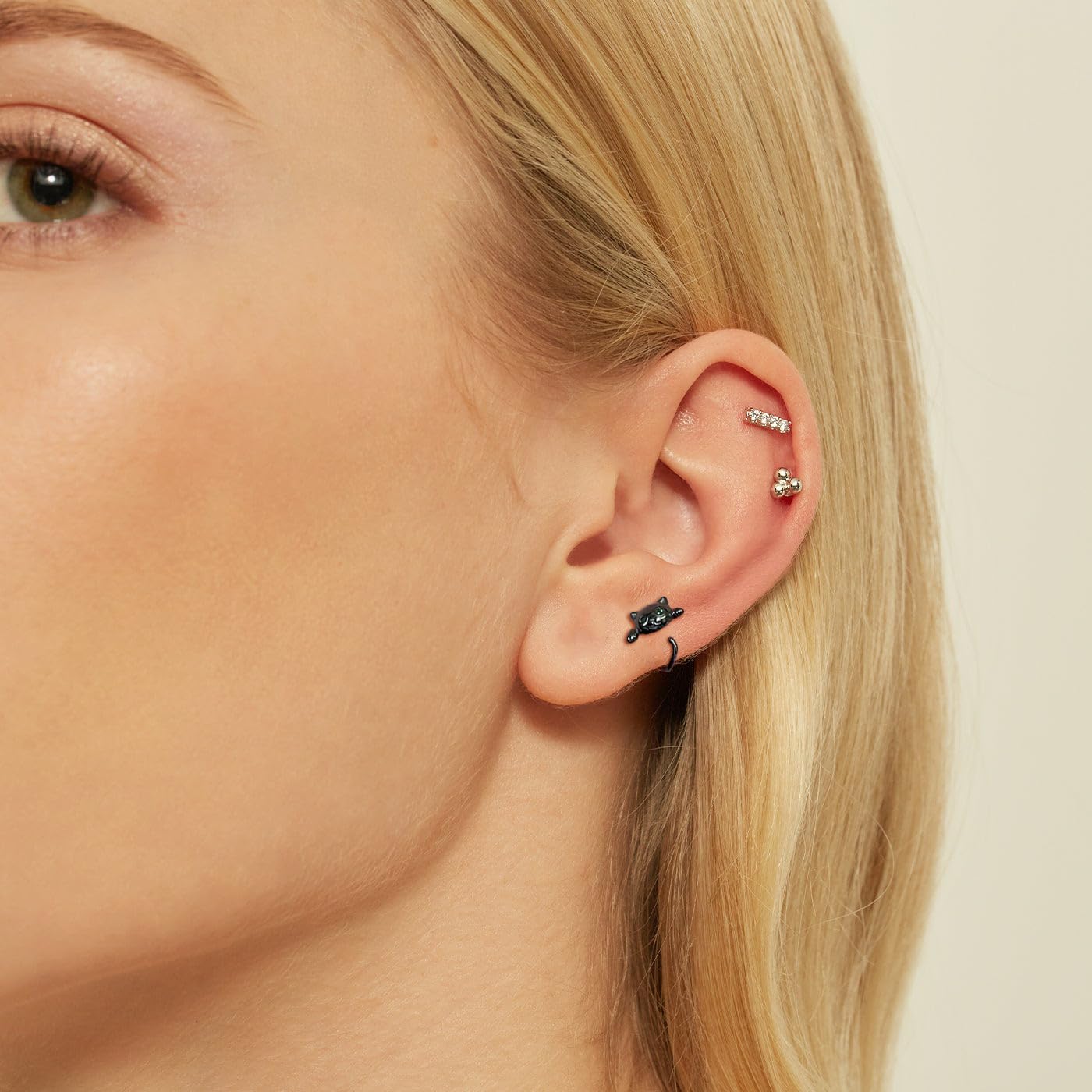 20g Cute Cat Earrings 925 Sterling Silver Huggie Earrings Nose Piercings Jewelry