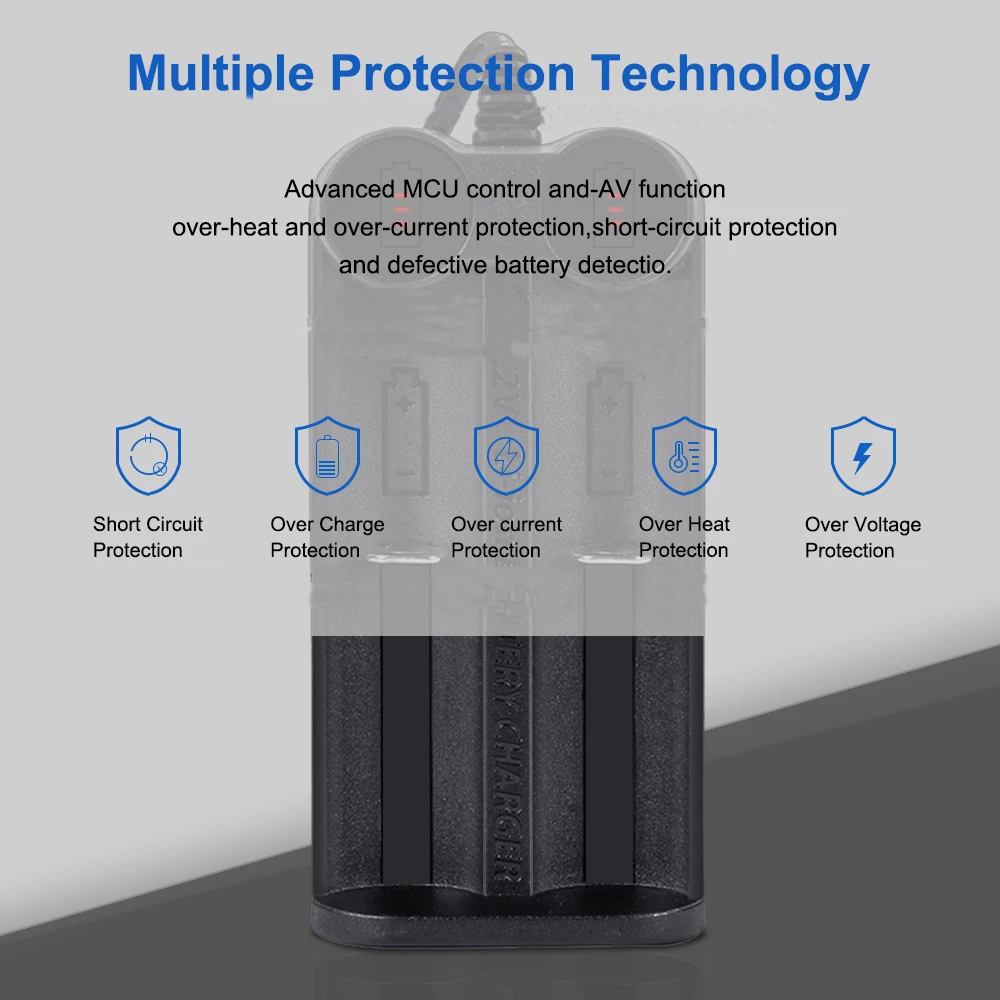 * Compatible with cylindrical IMR/LiPo batteries including 26700,26650,26500,26500,22700,20700,22650,22500,18700,18650,18500,18490,18350,17650,16650,16340(RCR123),14650,14500 Input Voltage