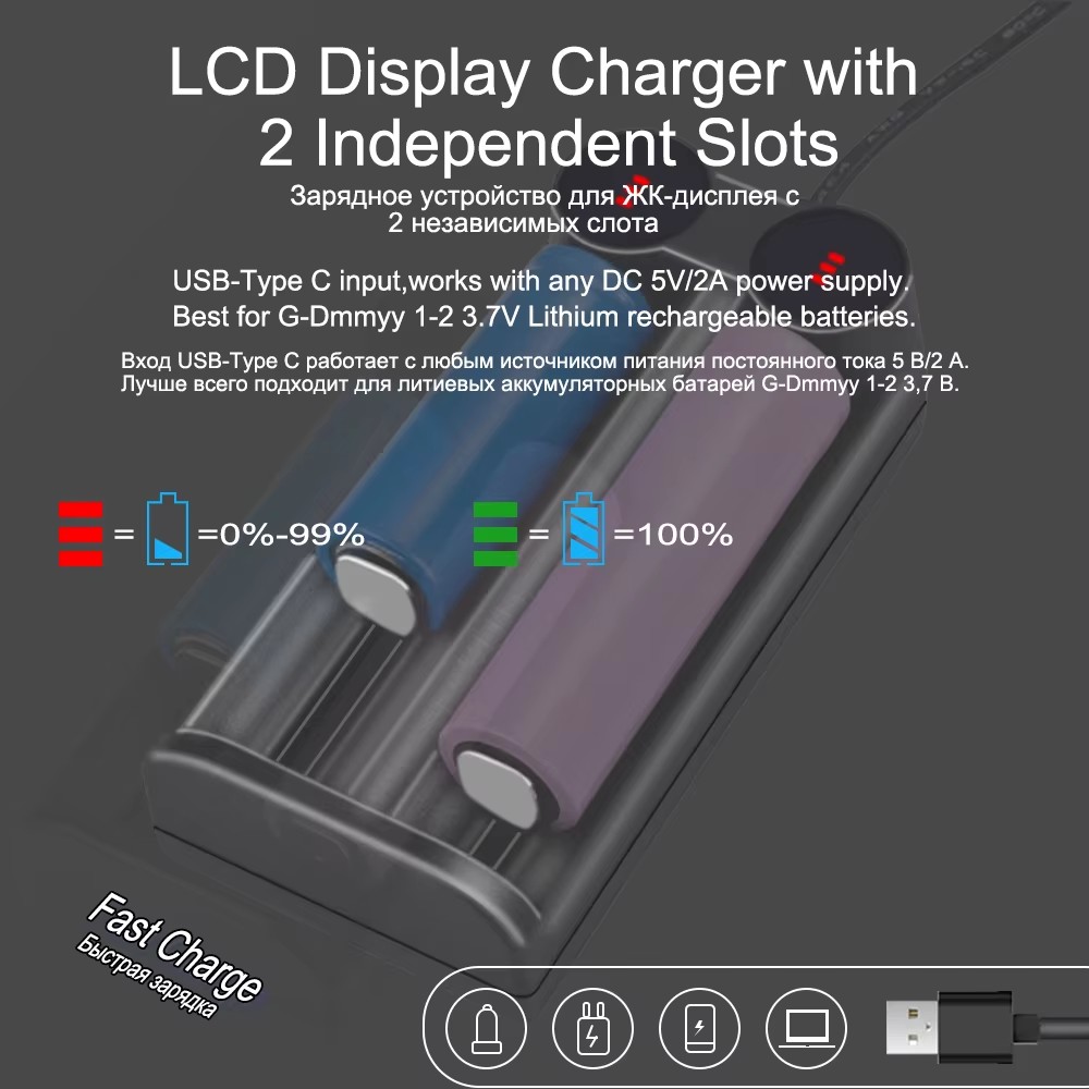 * Note 2: Can charge 1, 2 different or same batteries at the same time.