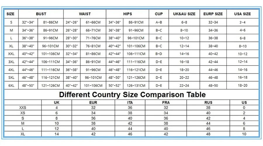 Size Chart: 1inch=2.54cm
