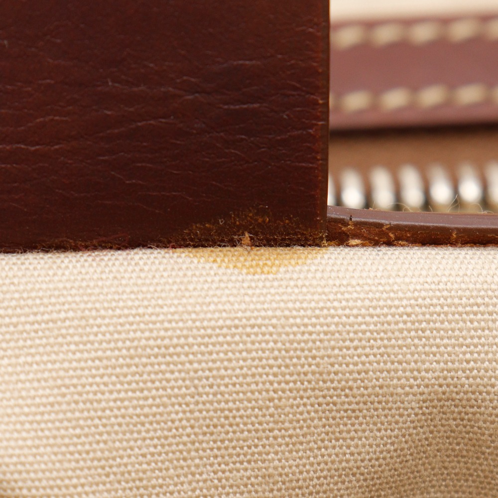B- Exterior:Scratches、Corner thread、Tear、Musty odor Inside:Storage smell Handle:Minor stain、Scratches、Peeling、There is a feeling of use Metal:Rust、Plating peeling |