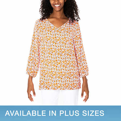 Mario Serrani Ladies' Size Small (4-6), 3Q Sleeve Tunic Top, Pink Floral