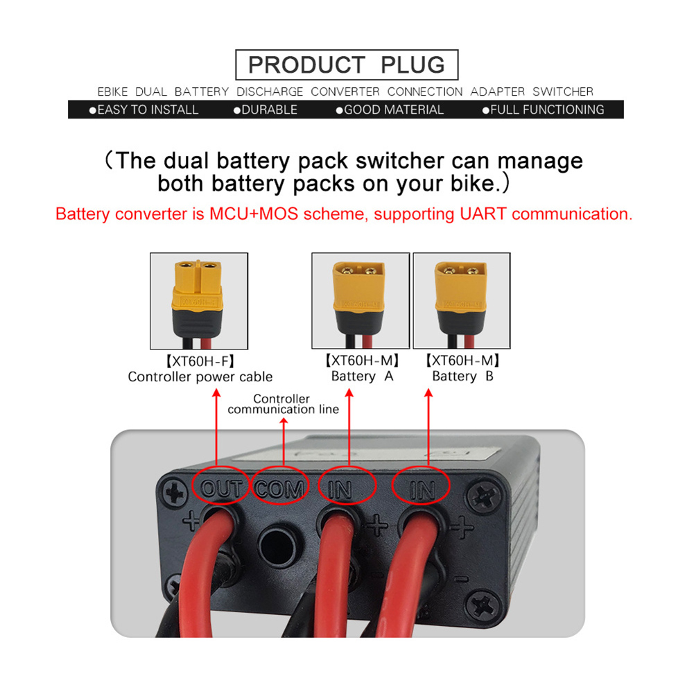 3.Electric Bicycle Ebike Dual Battery Discharge converter Connection Adapter Switcher Module Increase Battery Capacity