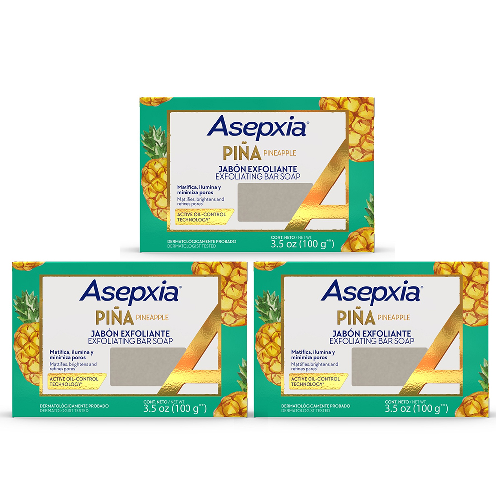 Asepxia Exfoliating Pineapple Bar Soap removes dead skin cells, impurities, and debris from the skin’s surface. <br>It calms and brightens skin instantly. Natural pineapple acid mattifies by eliminating excess oil, brightens, and unclogs pores. <br>Intensive nutrition! Our pineapple soap softens and moisturizes as you wash. Natural ingredients moisturize and calm greasy and sensitive skin. <br>Dry, oily, combination, and sensitive skin-friendly. <br>For optimum results, exfoliate morning and night. Our products eliminate pore-clogging debris, oil, and pollutants to maintain face and body skin clean of blemishes. <br><br>Packaging may Vary. <br>