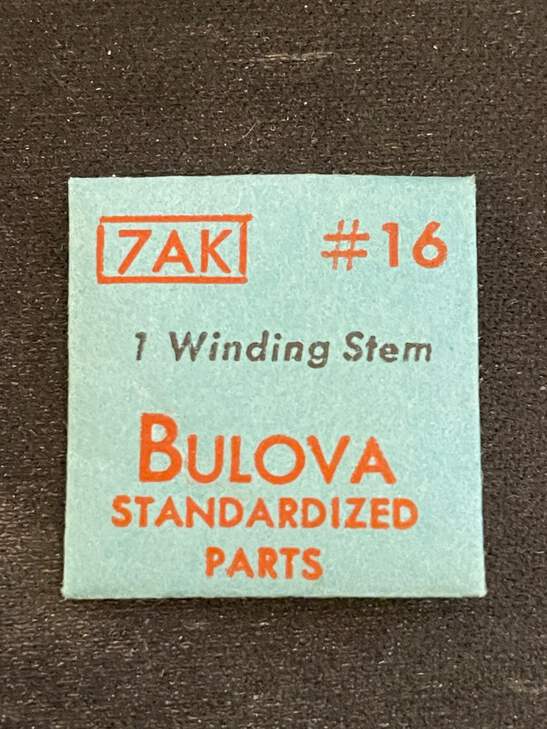 Bulova factory stem for caliber 7AK, 7AA, 7AH, 7AN, 7AP and perhaps other as well, new in envelope. I likely have several of these so the one you get may differ slightly from the images. I specialize in hard to find watch parts and all watch parts are unconditionally guaranteed. If you need a part for a Swiss watch I likely have it so feel free to inquire. Images do a pretty good job of representing the item.