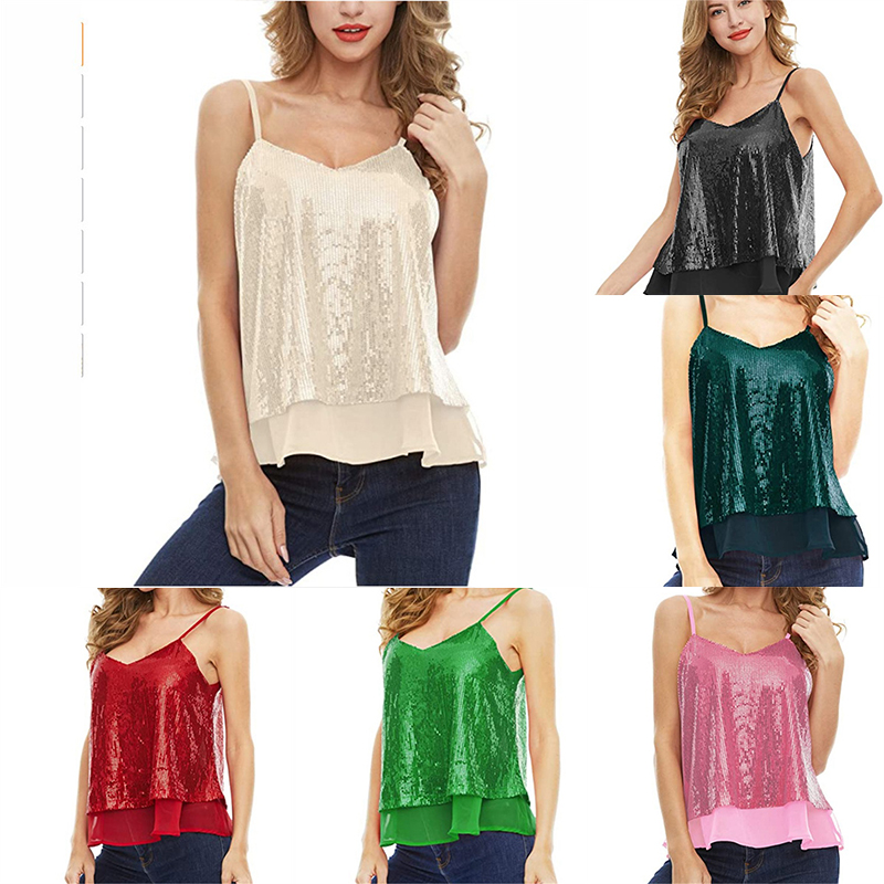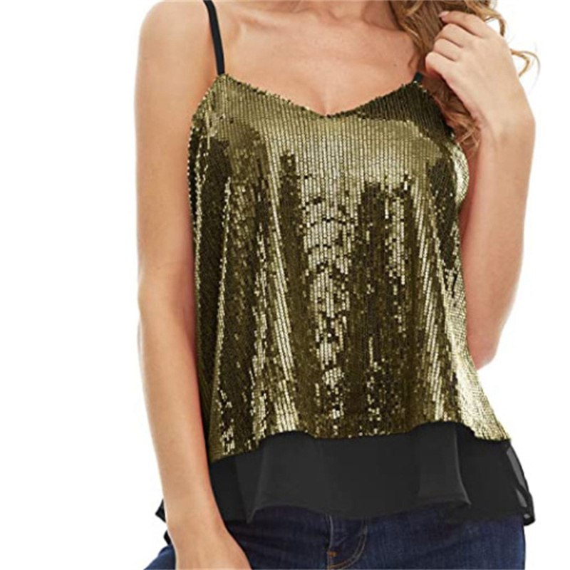 Sexy Sequins V-neck Sling Vest Bottoming Shirt Women's Loose Tops Outerwear