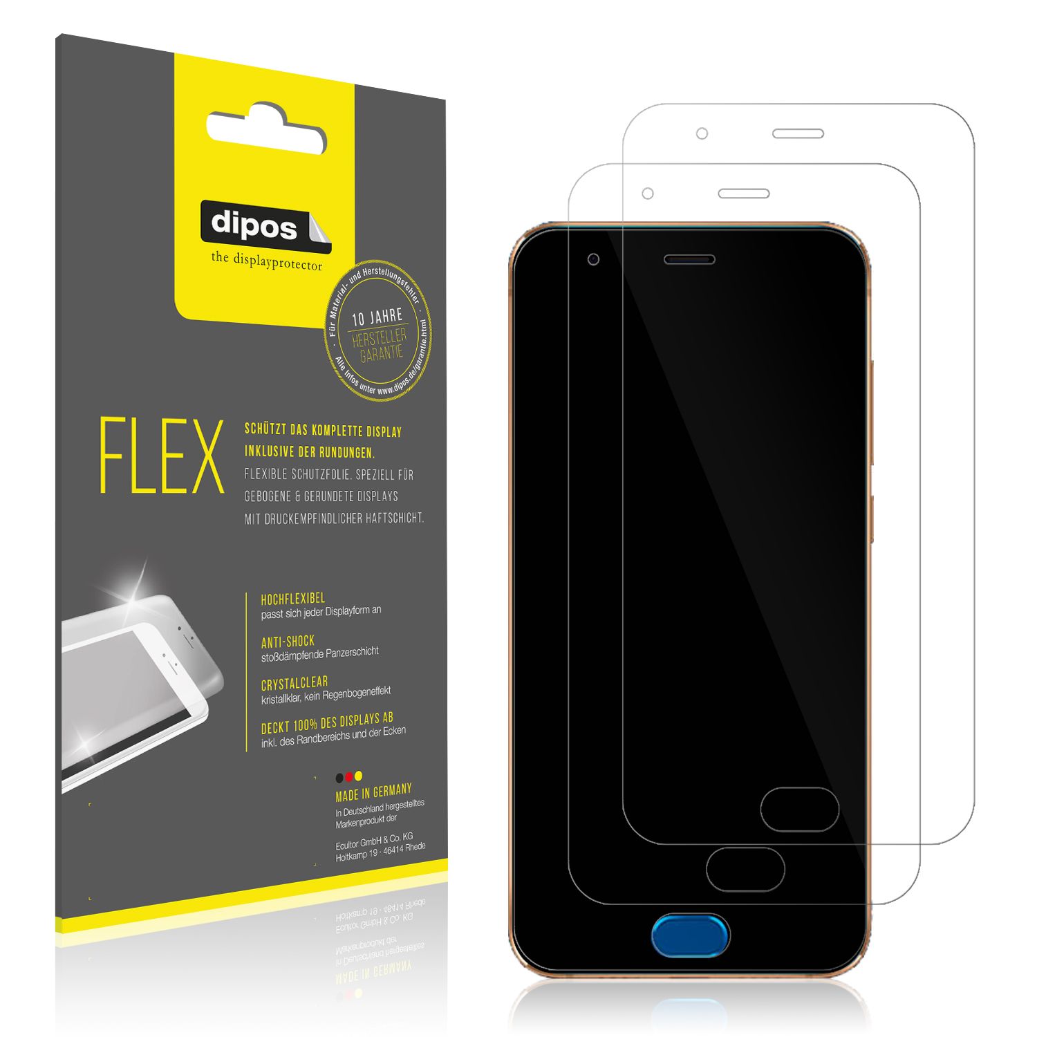 Applicazione: grazie a una flessibilità più morbida di pellicole in PET o vetro, si adatta perfettamente alla curvatura del display. dipos FLEX aderisce per mezzo di una pellicola a contatto sensibile alla pressione e rimovibile in ogni momento, quindi a seguito di ripetute pressioni sul display, si raggiungerà la forza di aderenza definitiva. Non applicare un’eccessiva forza di trazione durante l’applicazione, poiché la pellicola potrebbe allungarsi, quindi dipos FLEX non si adatterebbe più al dispositivo in modo preciso, soprattutto laddove sono presenti eventuali incavi.