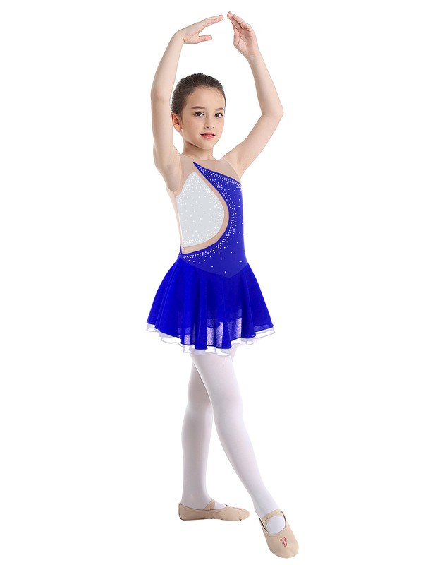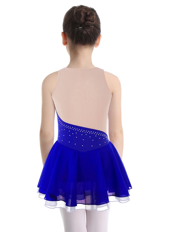 US Kids Girls Skating Dance Dresses Hollow Back Leotard Skirt Sequins Dancewear