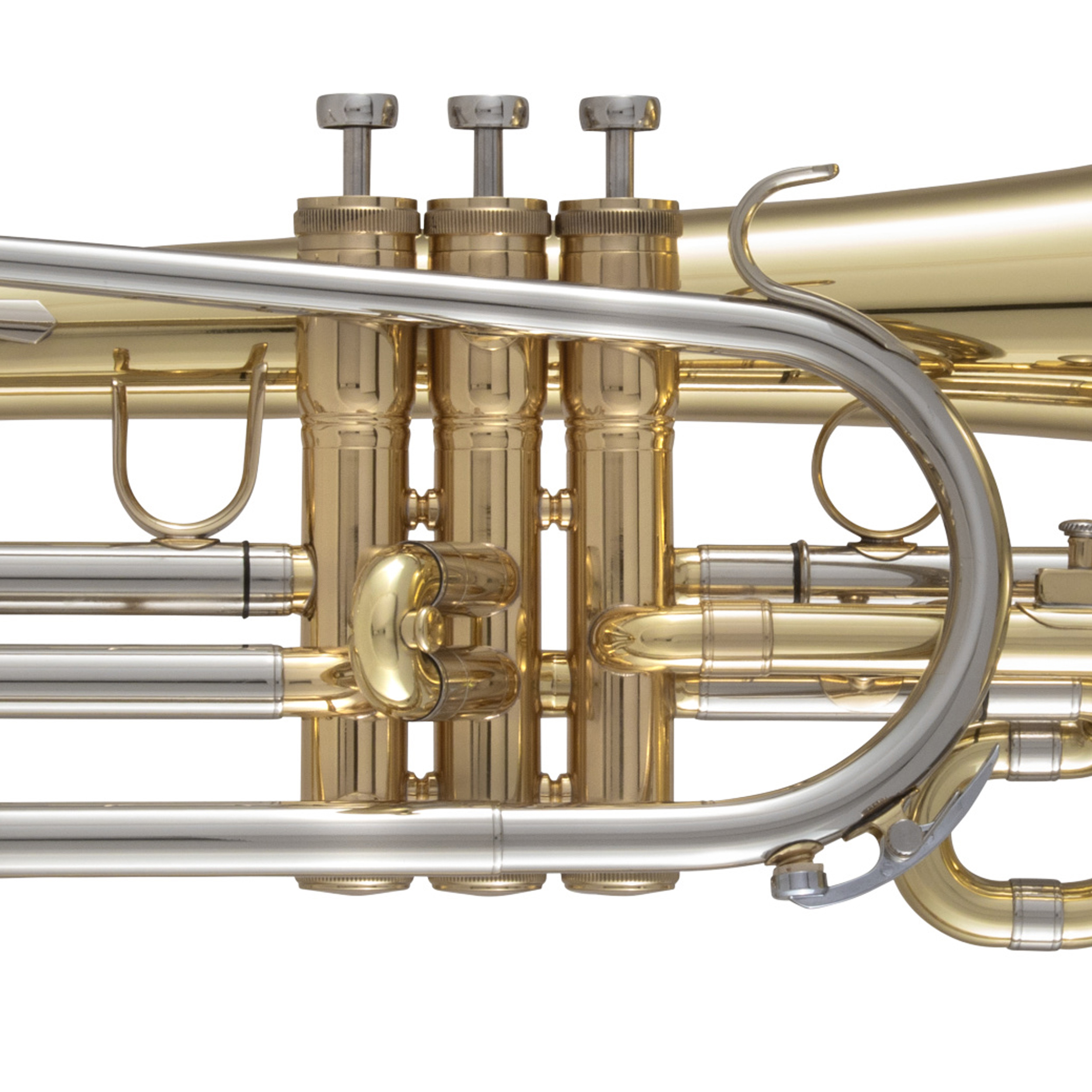 • Angled mouthpipe familiar to French horn players