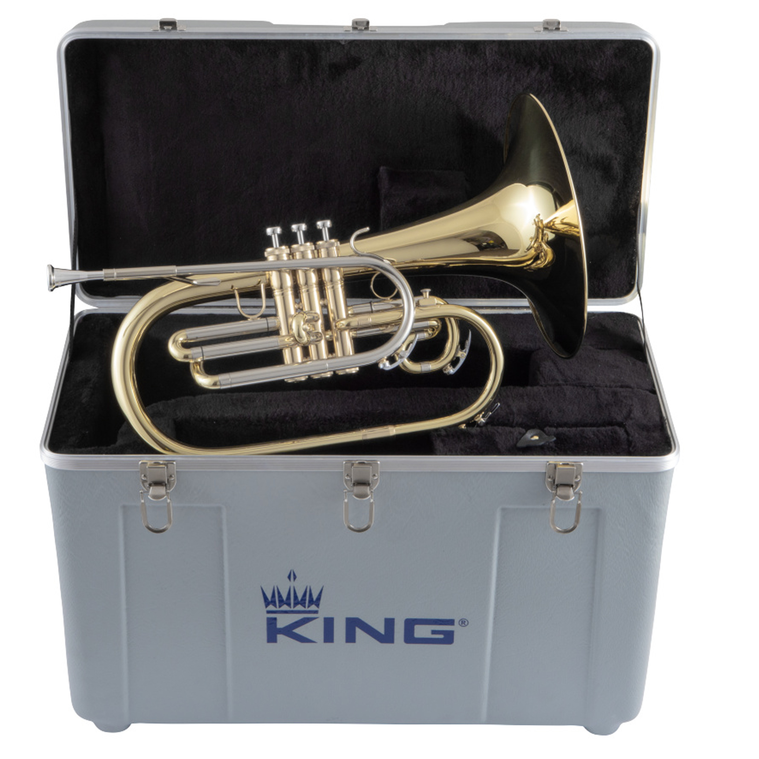 The King "Ultimate" KMH611 marching horn is an innovative marching horn/mellophone hybrid designed specifically for French horn players. Built in F-alto instead of B-flat alto like traditional marching horns, the KMH611 marries the superior projection and response of the traditional trumpet-shank mellophone with the resistance and smaller venturi of a French-horn shank receiver. These, as well as the angled mouthpipe, makes the KMH611 more comfortable for French horn players on the marching field as well as easing the transition back to concert horns.