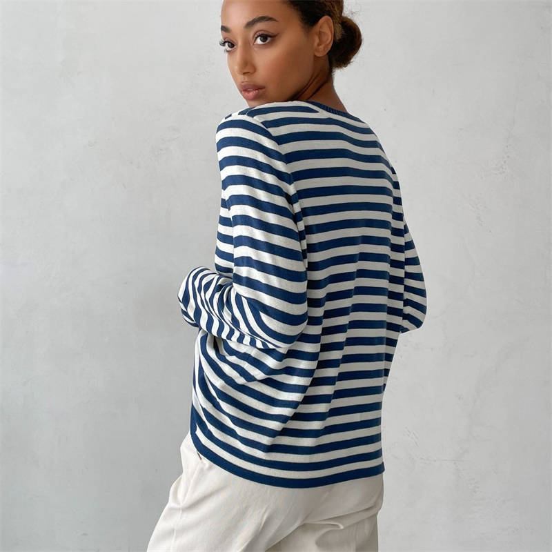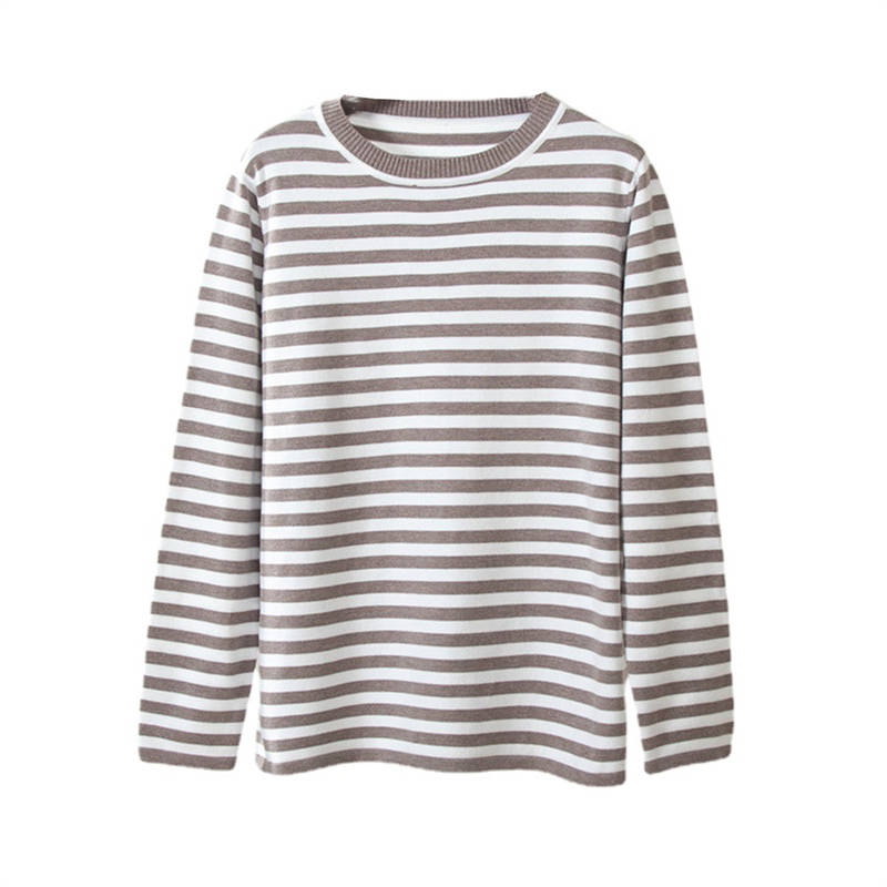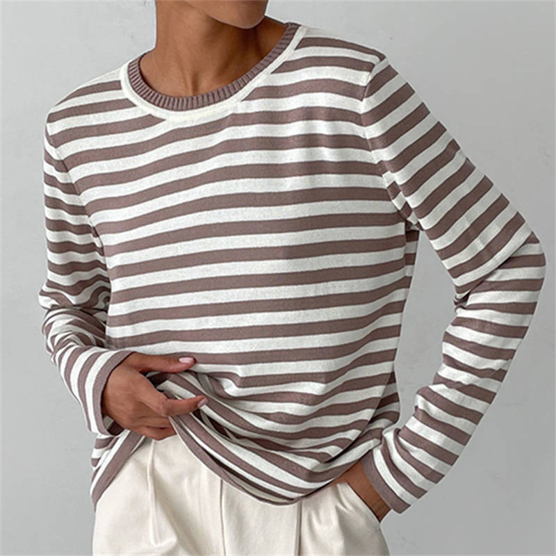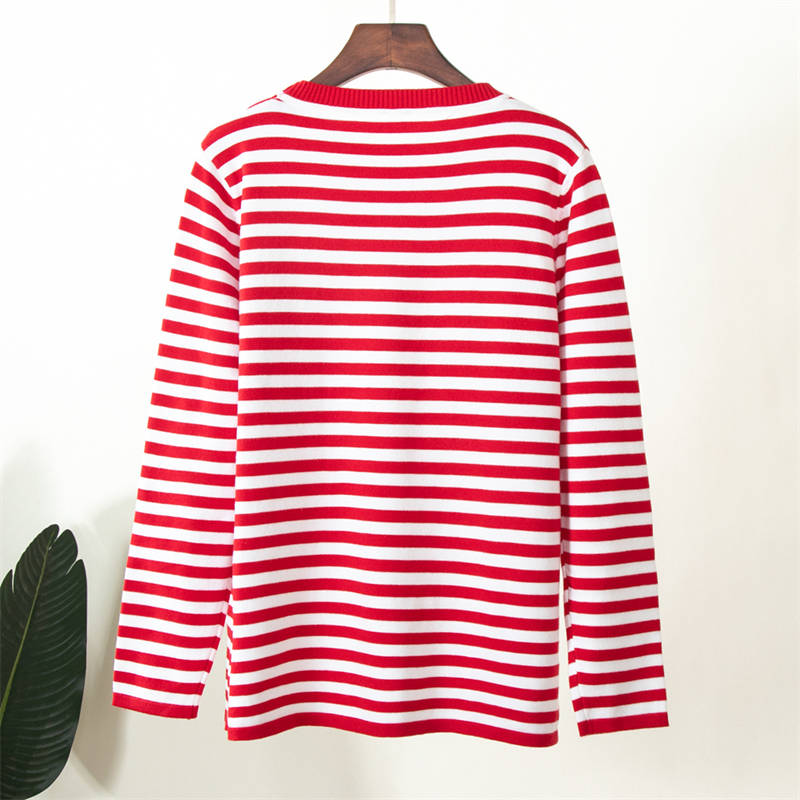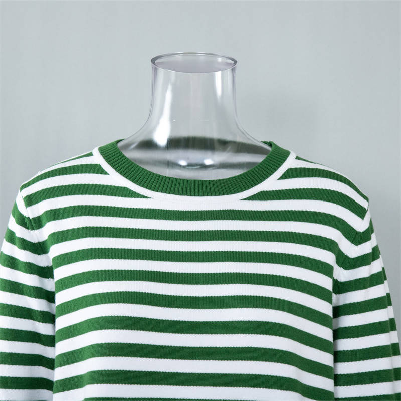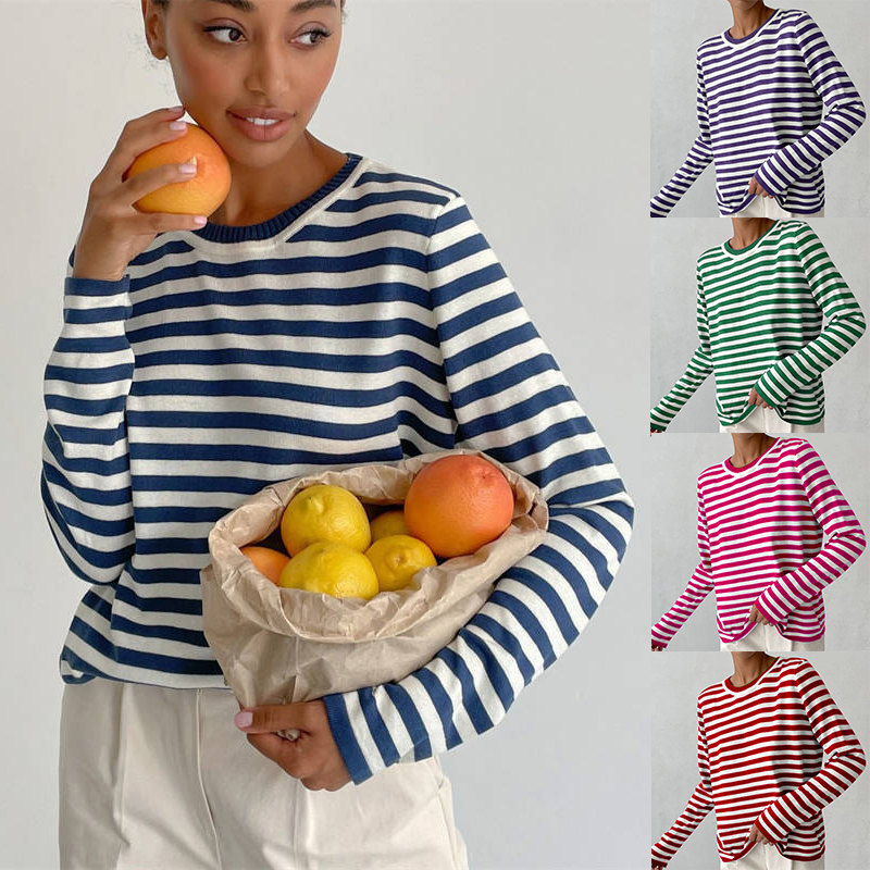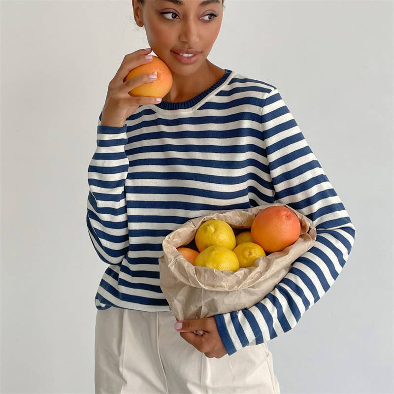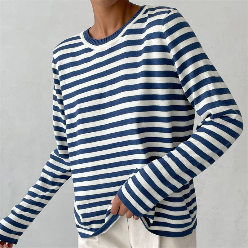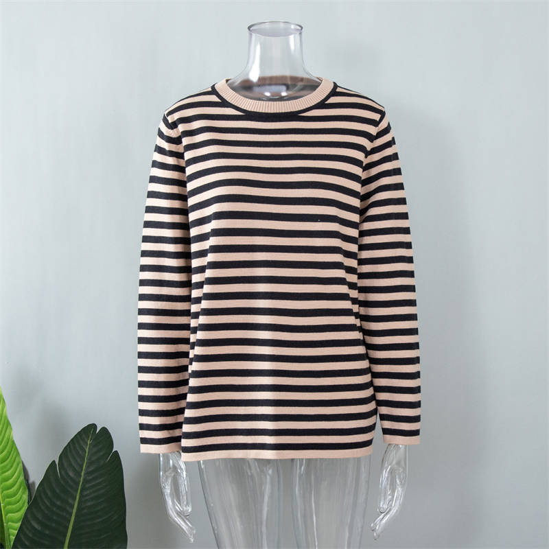 Knitted Striped Sweater Round Neck Pullover Retro Striped Classic Versatile