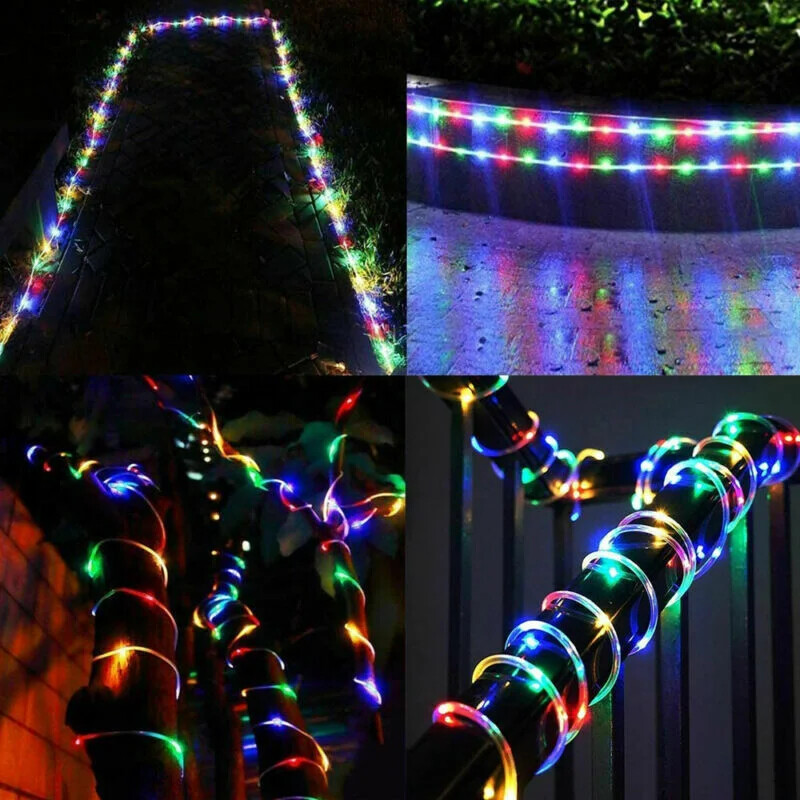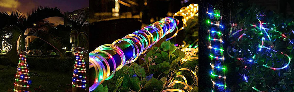 - Solar Rope Light & Energy Saving -- LED solar lights use high-efficiency solar panels, which can convert solar energy into electric energy and storage in the built-in battery let the lights lit up.Solar powered,energy saving,do not require additional cost,and high safety.