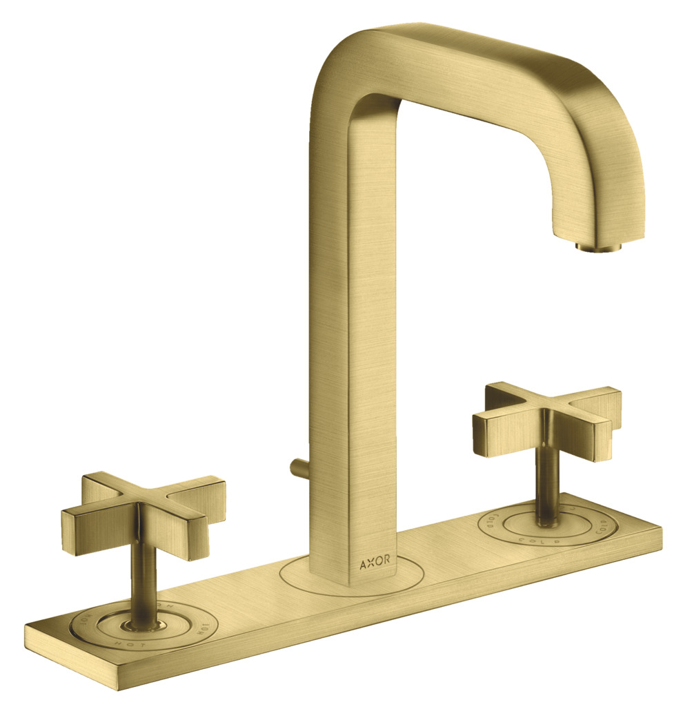 Hansgrohe AXOR Citterio 3-hole basin mixer 170 with spout 140 mm, cross handles, plate and pop-up waste set Brushed Brass