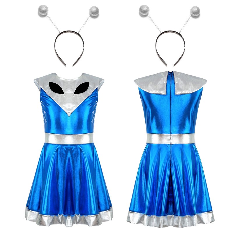 Set Include: 1Pc Girl Alien Cosplay Dress, 1Pc Hair Hoop
